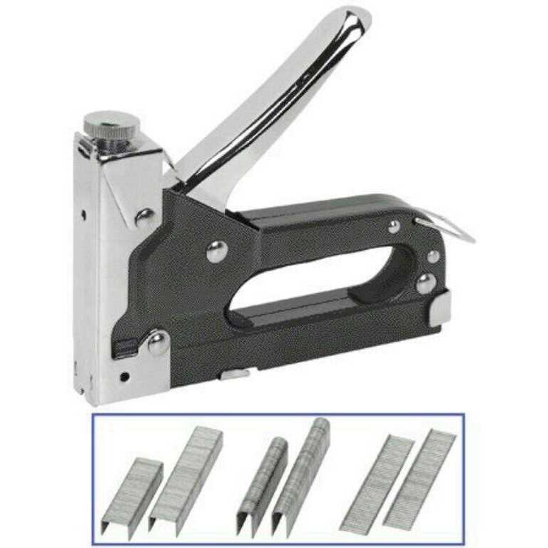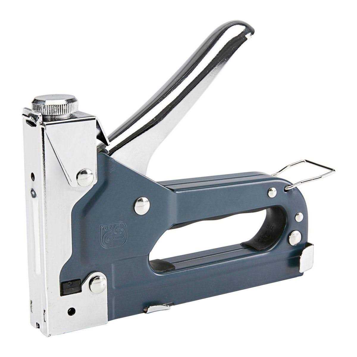 The three-way tacker staple gun is perfect for screen repair, picture framing, shelf trimming and other lightweight jobs around the house. Features include a depth adjustment knob and palm squeeze trigger for easy operation. The versatile multi-purpose staple gun shoots standard brads and U staples to fit a variety of tasks.