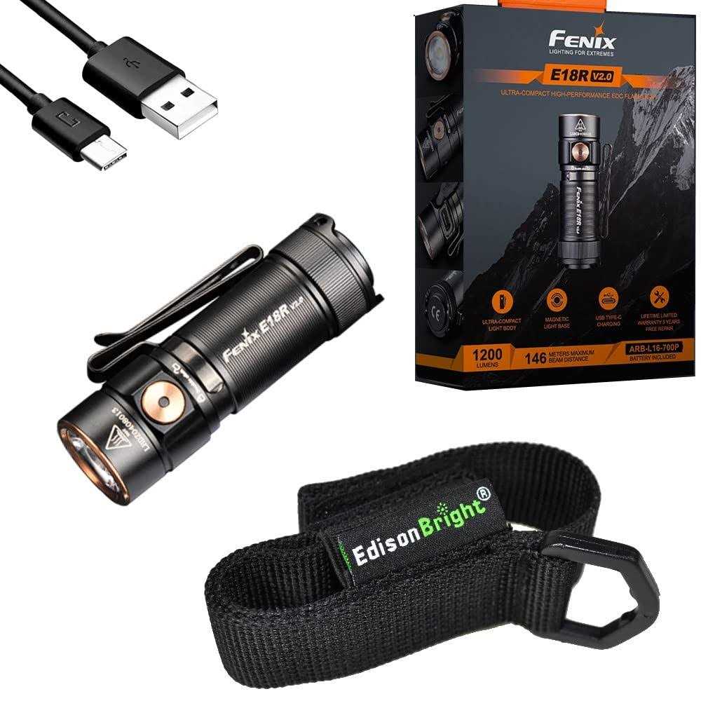 Fenix E18R V2 1200 Lumens EDC Rechargeable Flashlight with EdisonBright Holster Bundle