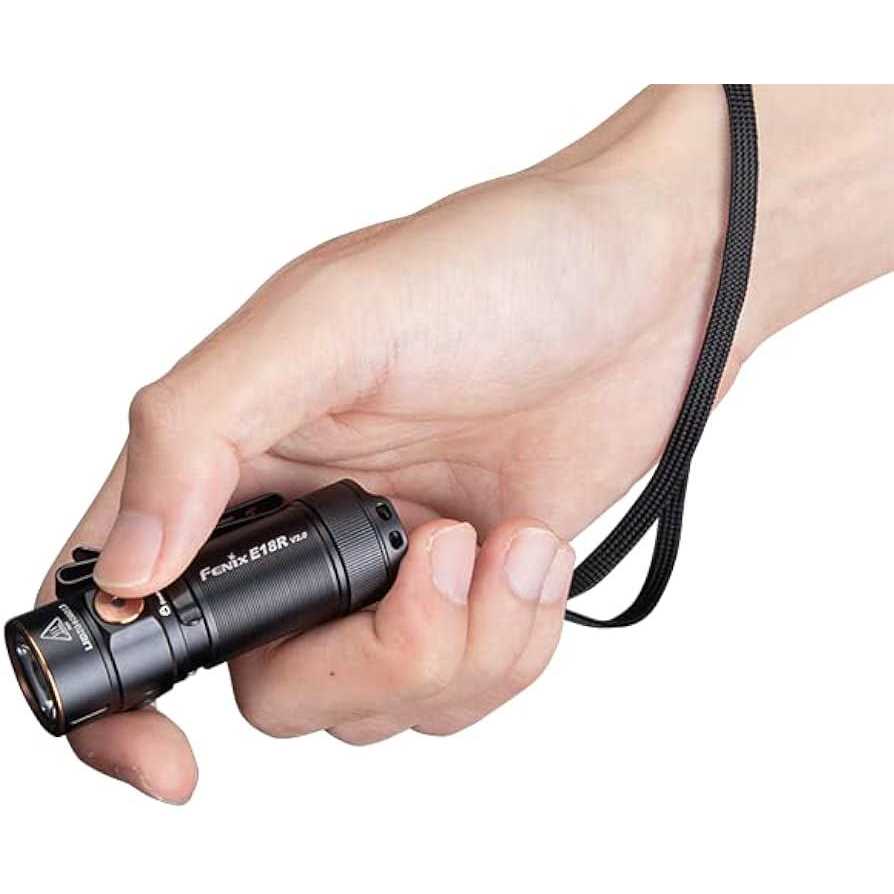 Bulbs: LED Power Source: lithium battery Batteries Included: 16340 li-ion battery Modes: 6 Lumens: 1200 The Fenix E18R v2.0 rechargeable flashlight delivers a 1200 lumen beam with distances up to 159 yards. USB-C RECHARGEABLE. Upgraded to fast and reliable USB-C charging the E18R v2.0 is better than ever. ULTRA COMPACT & DURABLE. The new ARB-L16-700P can power the E18R v2. 1200 lumen max ultra compact rechargeable flashlight. battery included. IP68 Rated Waterproofing: Fully submersible to 6 feet for up to 30 minutes. Up to 200 hours of light on a single charge. Bundle includes a EdisonBright brand holster. 1200 lumen max ultra compact rechargeable flashlight. battery included. IP68 Rated Waterproofing: Fully submersible to 6 feet for up to 30 minutes. Up to 200 hours of light on a single charge. Bundle includes a EdisonBright brand holster.