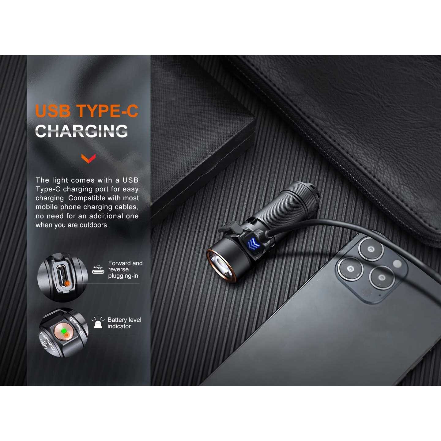 - 1200 lumen max ultra compact rechargeable flashlight.