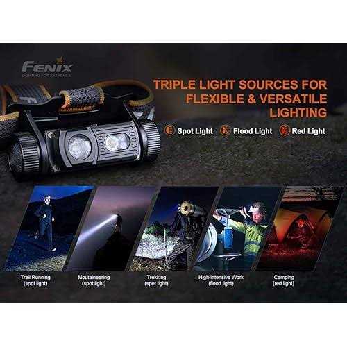 BRIGHT MULTIFUNCTIONAL HEADLAMP – The Fenix HM60R emits up to 1200 lumens with an auxiliary red light, ideal for outdoor activities such as jogging, hiking, camping, running. USB-C RECHARGEABLE- Rechargeable via built-in USB-C port, the HM60R is capable of running up to 54 hours on the lowest mode. TRIPLE LIGHT SOURCE – Primary spot light for beam penetration, secondary flood light for wide coverage, and auxiliary red light for emergencies. COMFORTABLE AND DURABLE – Comfortable to wear for hours with its highly reflective and breathable headband, Built with aluminum alloy and rated at IP68 waterproof, this headlamp can withstand any harsh environment. HM60R Headlamp with ARB-L18 pre-installed, USB-C Charging Cable, Lumentac Organizer The Fenix HM60R headlamp is small, lightweight yet very bright, designed specifically for outdoor activities such as walking, jogging, running, or backpacking. It emits a 1200 lumen max and reaches 126 feet. A sensor automatically senses your running speed to deliver optimal brightness. When it’s time to rest, switch to the red light to preserve the night vision or flashing red to raise the visibility to other runners and vehicles. With the choice of a wide angle floodlight, piercing spot light, and auxiliary red light, the HM60R covers all lighting needs.
