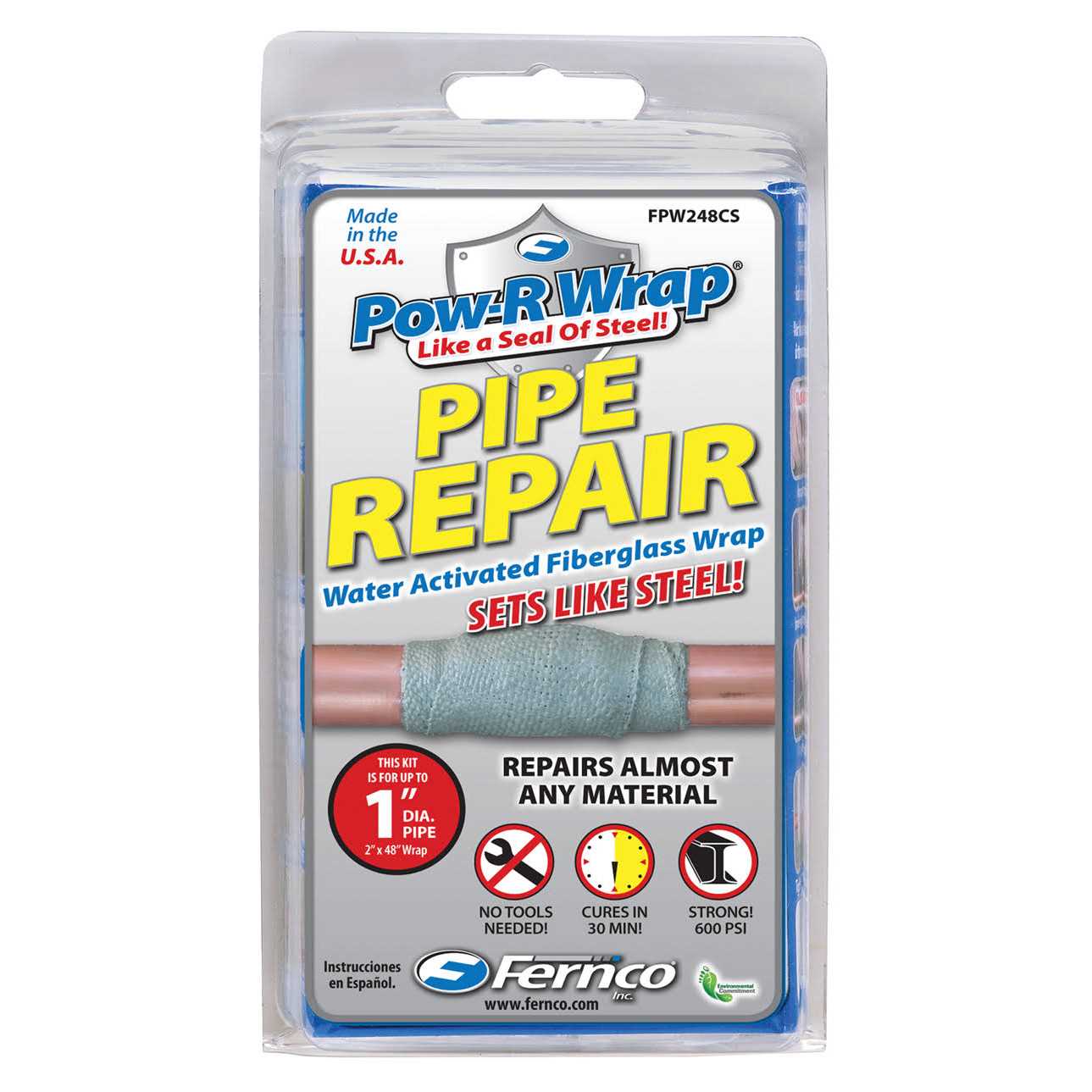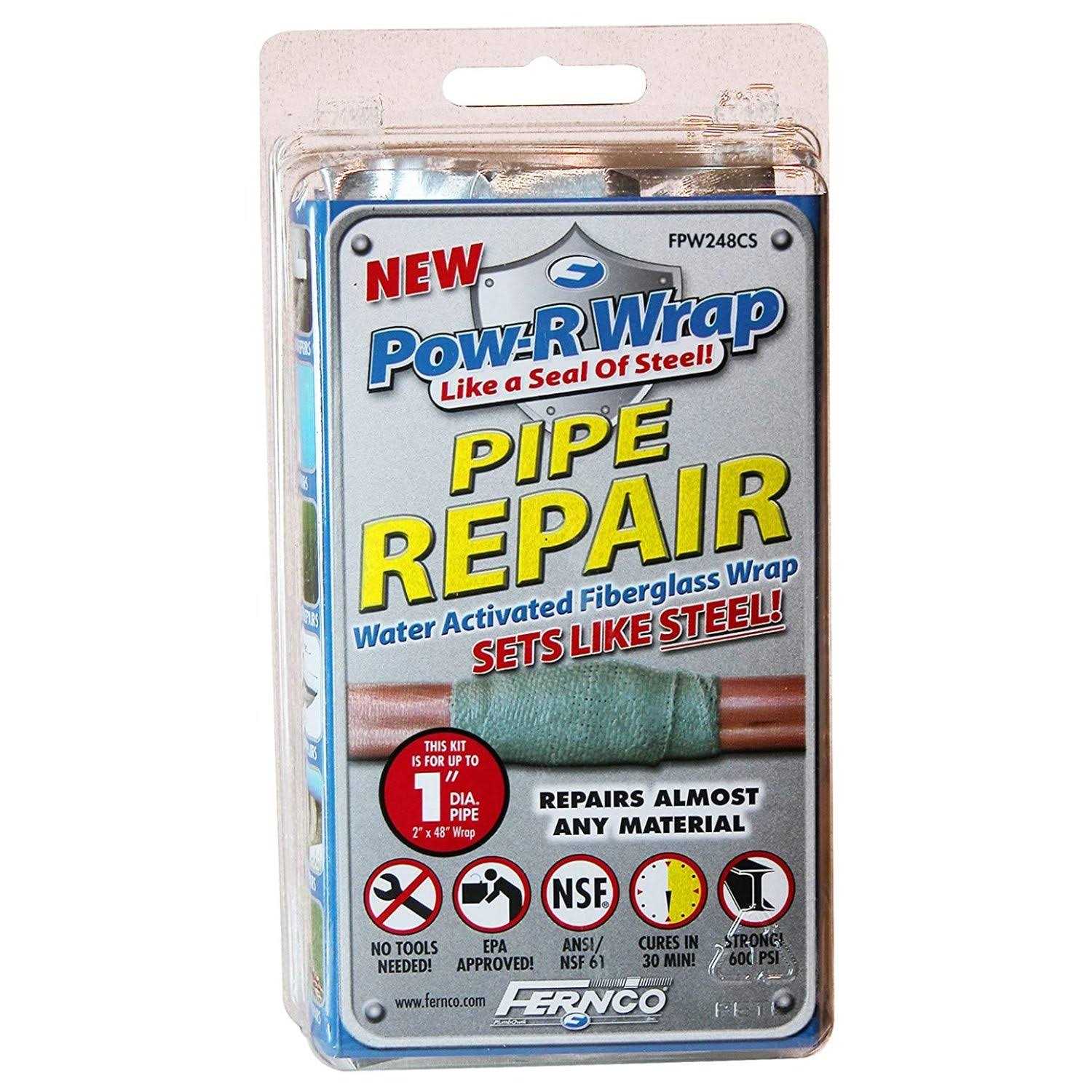 One sku for simplified ordering. With one to five kits you can repair copper, clay, plastic, pvc, ductile iron, cast iron, asbestos cement, cement or lead pipes from 8 in to 50 in in diameter. Repairs up to 1/4 in wide x 4 in long crack Safe for drinking water system repairs Conforms to standard water main pressure tests The Pow-R Belt provides you with an easier installation. Offering you professional results in as little as one to three hour cure time. *(cure time based on ideal temps between 55F and 75F).