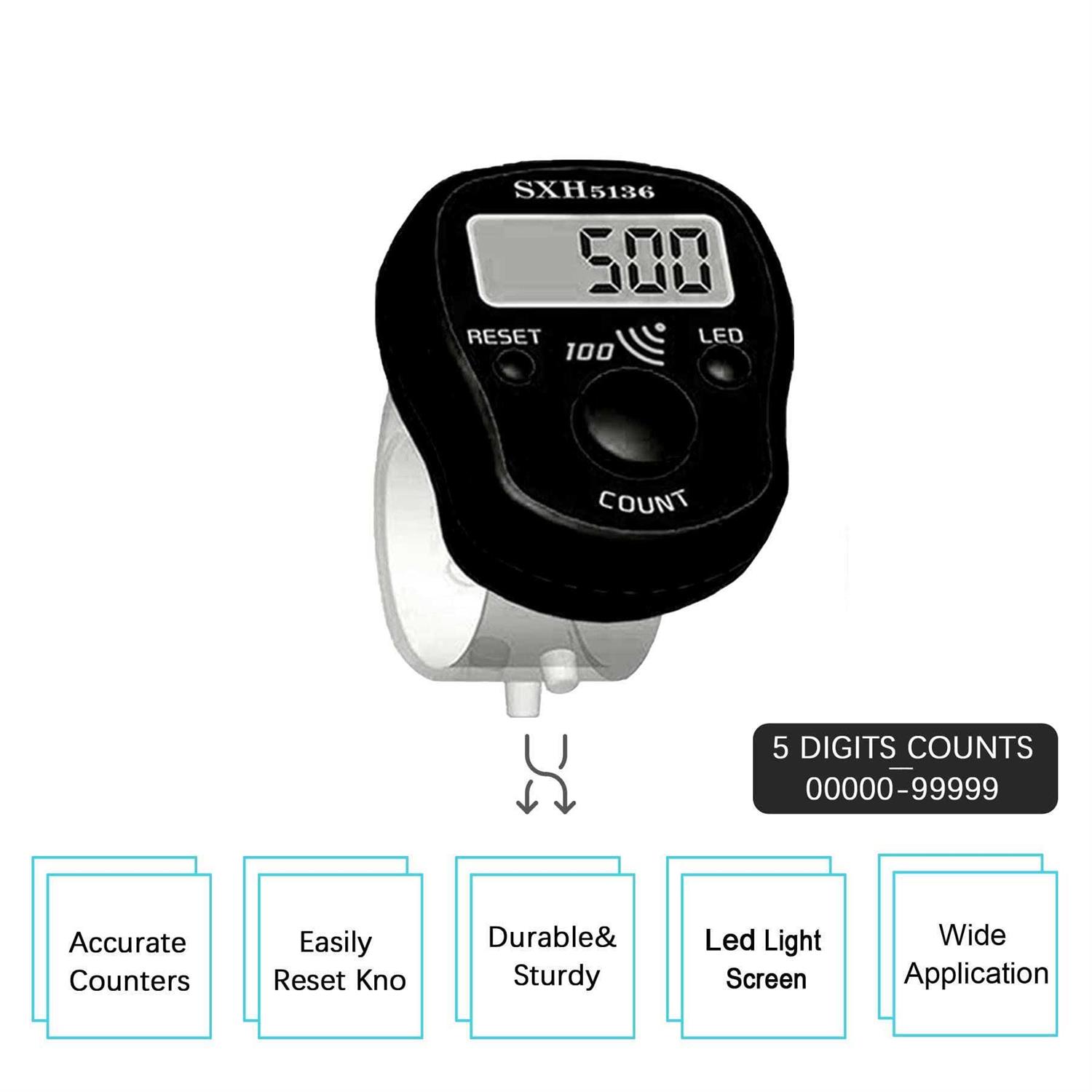 TESEAS Finger Counter Click Manual Digital Clicker, 5Pack Stitch Tally Knitting Counters LED Re-settable Digits Pitch Electronic LCD Display Finger Number