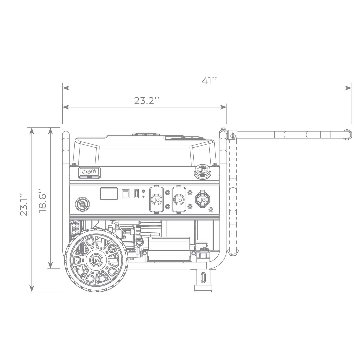 The FIRMAN P08003 Remote Start Generator has the FIRMAN OHV engine that provides longer life, higher performance, and lower maintenance. The engine is also cast iron sleeved for long durability with automatic low oil shutdown protection. The conveniently located multi-featured control panel has a FIRMAN custom designed outlet cover that protects outlets from dirt, dust, and debris. For less re-fueling, this generator has the largest fuel tank in the industry providing extended run-time and includes a built-in tank gauge for convenience. The P08003 has a quiet muffler with USDA FS certified spark arrester. The high leverage single folding handle with grip makes maneuverability easy. Starting is as simple as the push of a button on the remote start key fob from up to 168 ft. away. The durable, compact tubular roll cage frame design is built for years of use. Just add gas. Everything you need comes standard in the box.