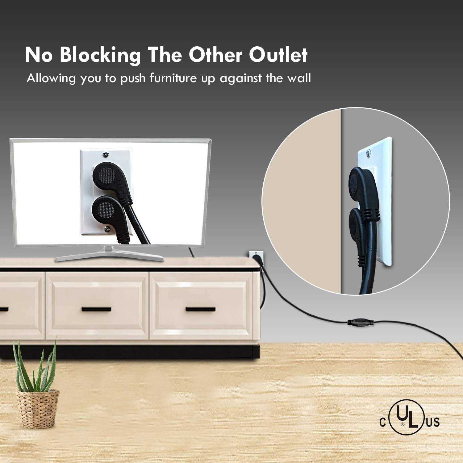 - Flat Plug: convert standard AC power cord to a slim flat plug for outlet at tight spaces, save space