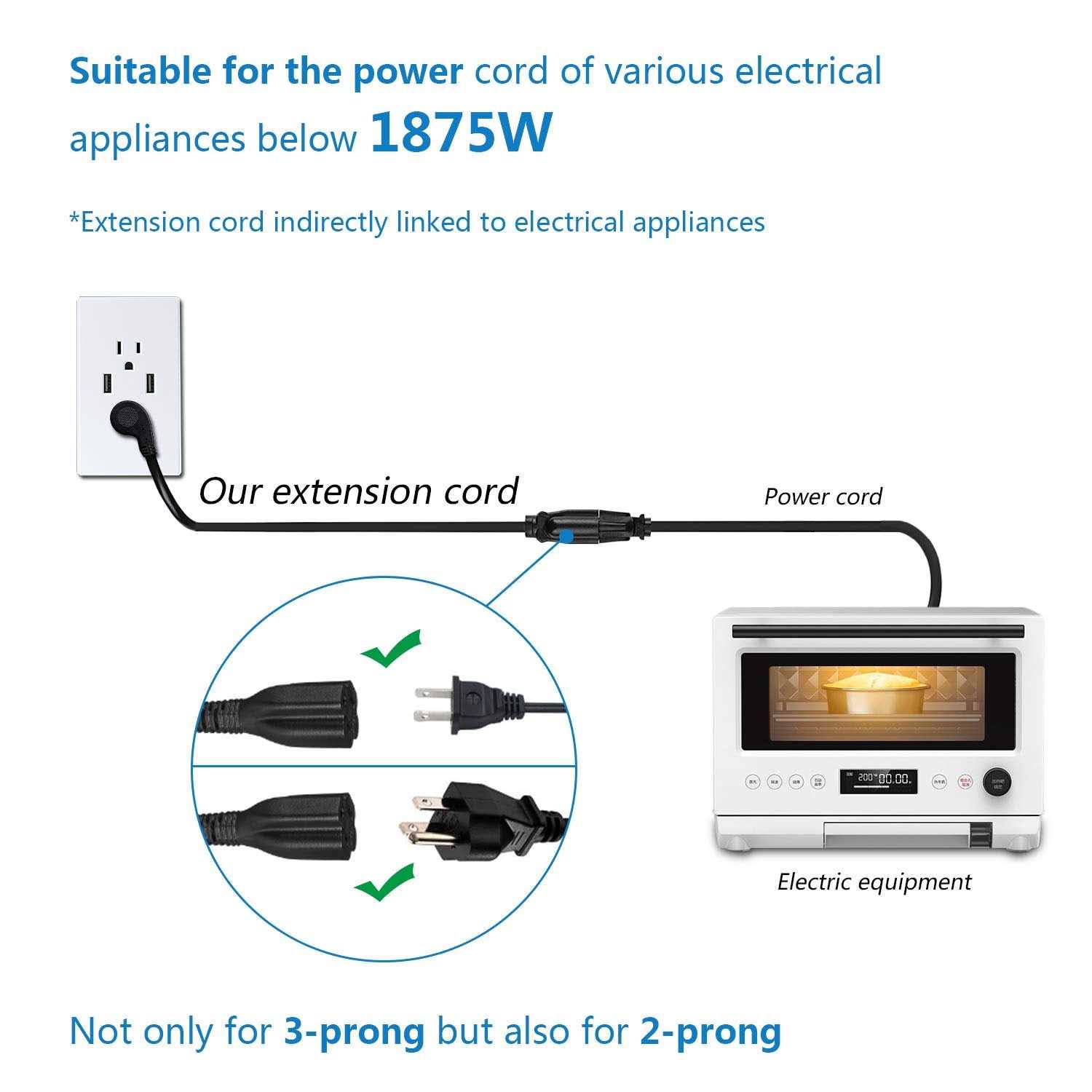 - Appliance Extension Cord: microwave, coffee pot, refrigerator, toaster, cooker, TV and so on
