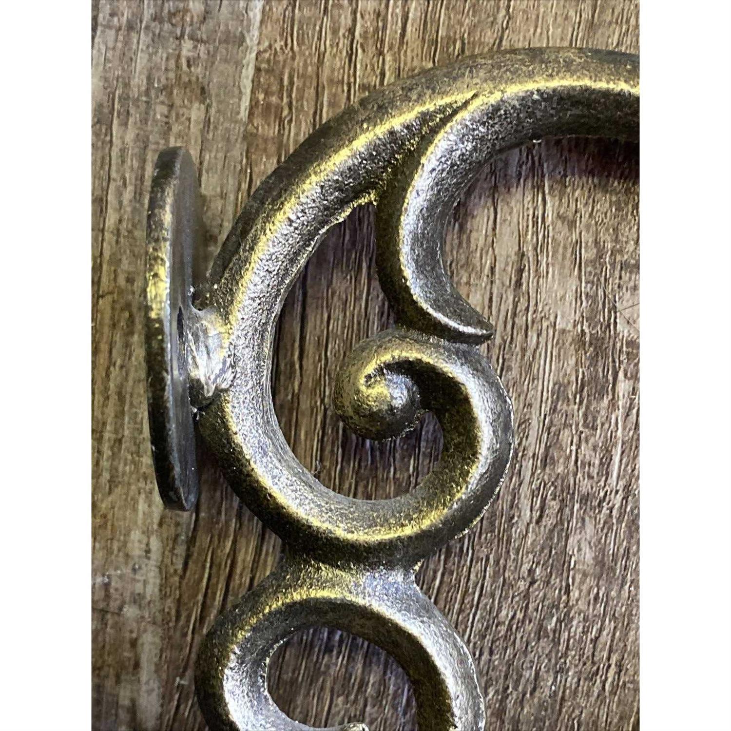 Gold Toned Cast Iron Shelf Brace features an ornate curly pattern and is 7.75″ Deep. Perfect for crafting your own shelves!