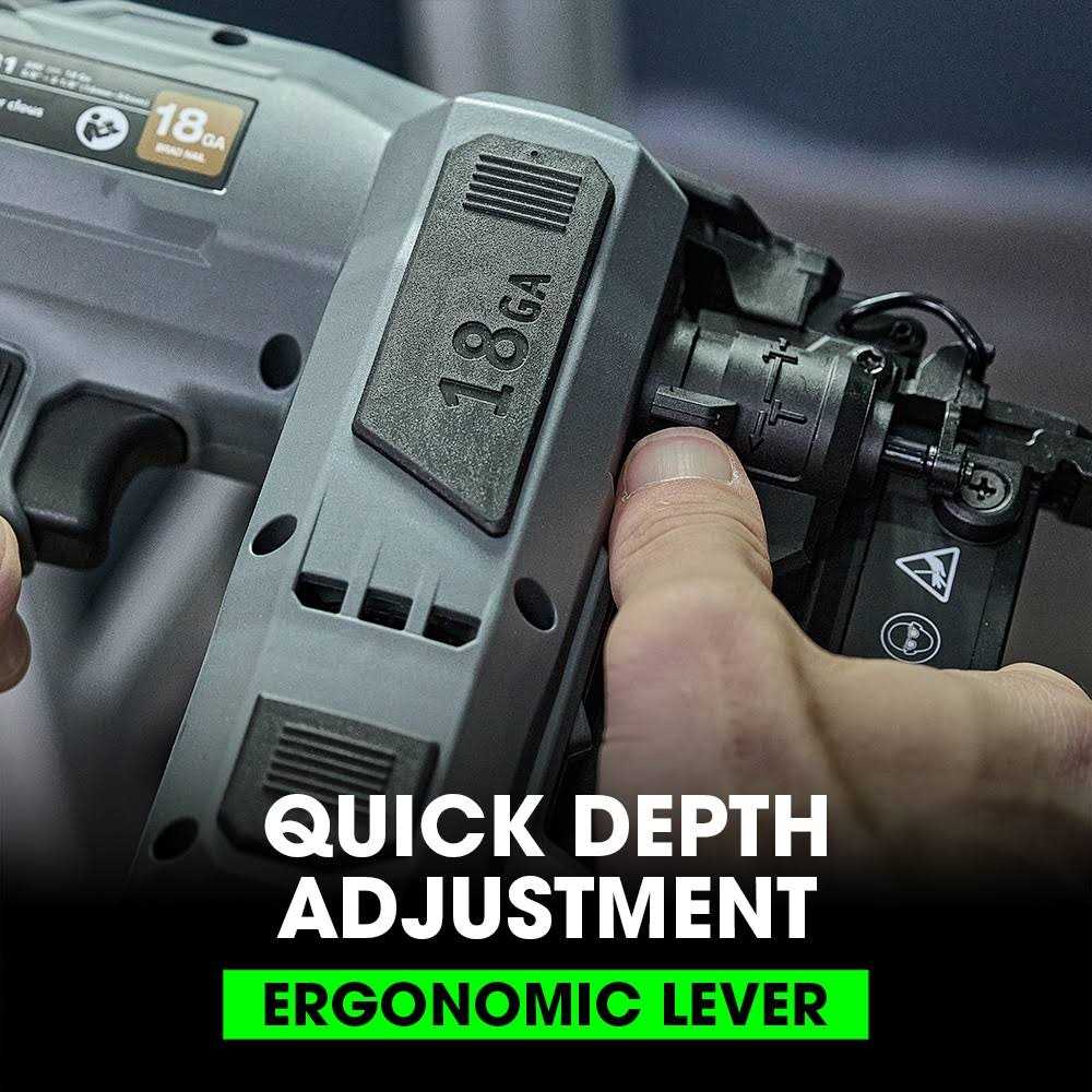 - Drives up to 3 nails per second with zero ramp up time QUICK DEPTH ADJUSTMENT LEVER