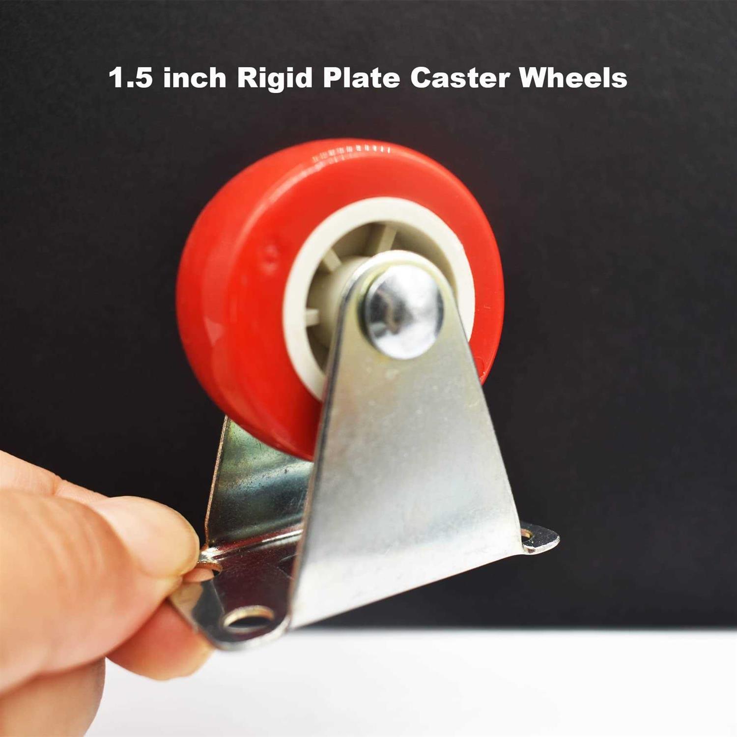 Floyutin 1.5 inch Rigid No-Swivel Plate Hard Rubber Caster Wheels for Furniture and Workbench 6 Packs(Free Screws)