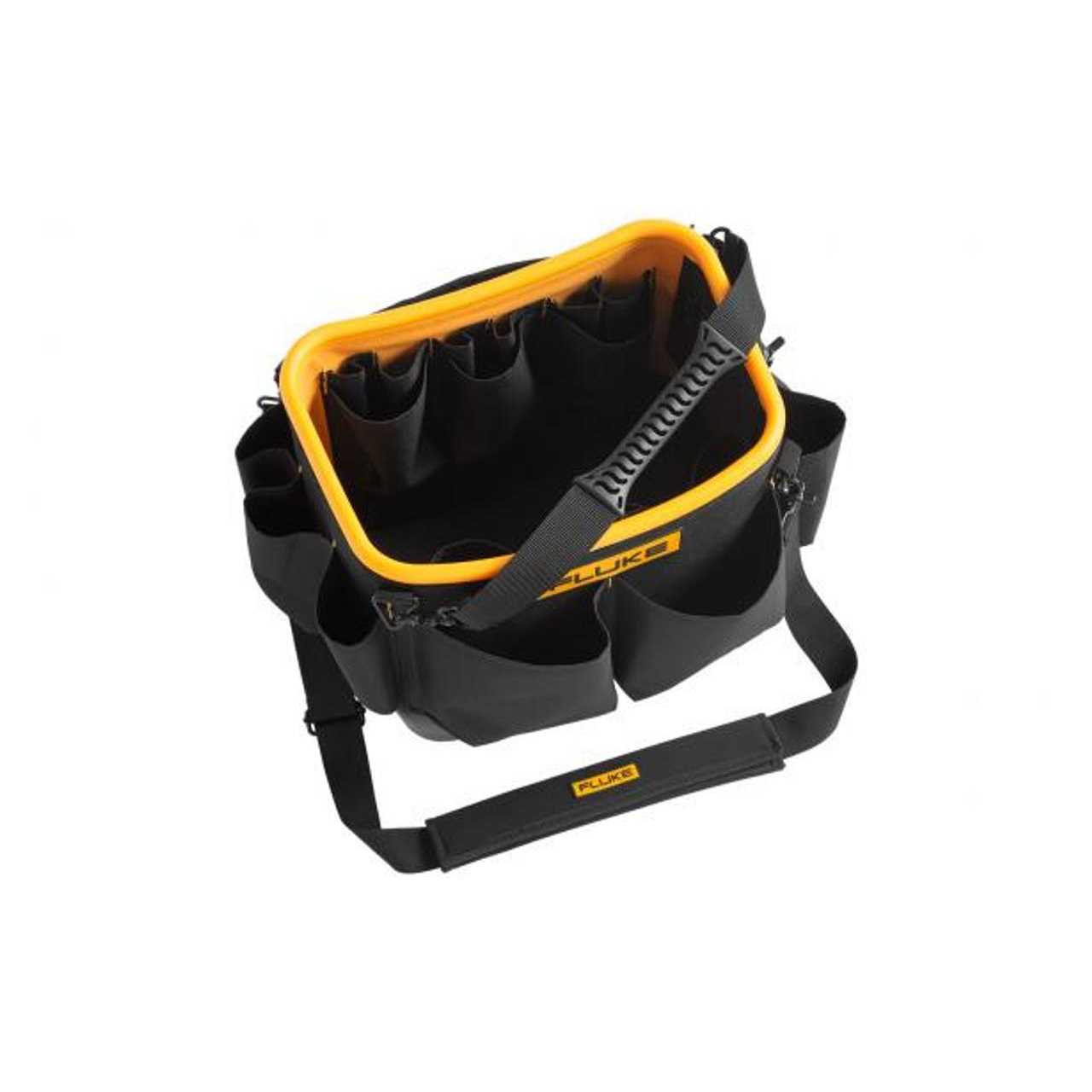 Durable and rugged, this tool bucket organizer bag has a 5.2-gallon capacity that can be relied on to protect and safely carry a variety of test tools and accessories. With its waterproof hard bottom shell, this versatile organizer has a total of 28 pockets that can fit hand tools, DMMs, clamp meters, test probes, and more.