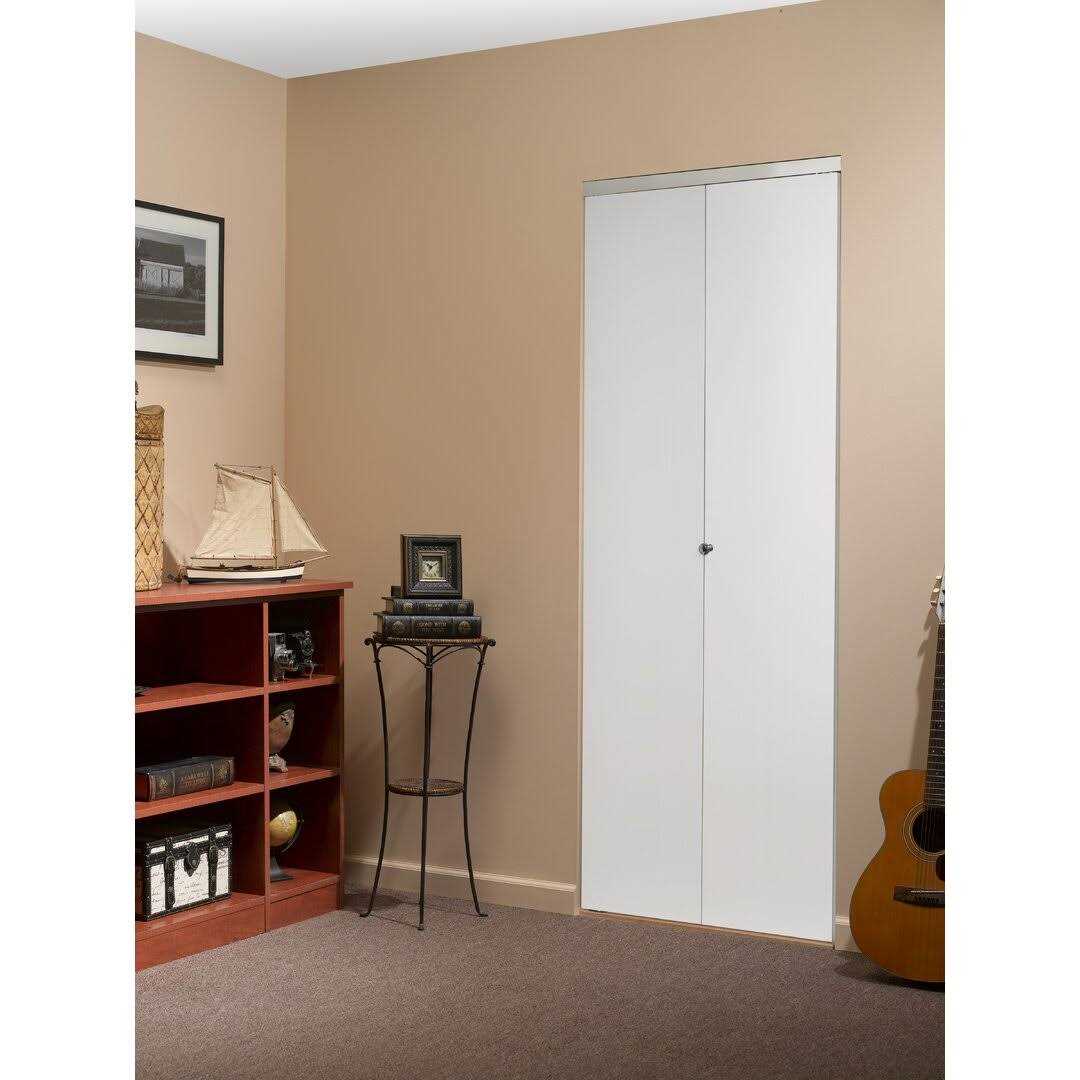 Impact Plus 24 in. x 96 in. Smooth Flush Solid Core Primed MDF Interior Closet Bi-Fold Door with Chrome Trim
