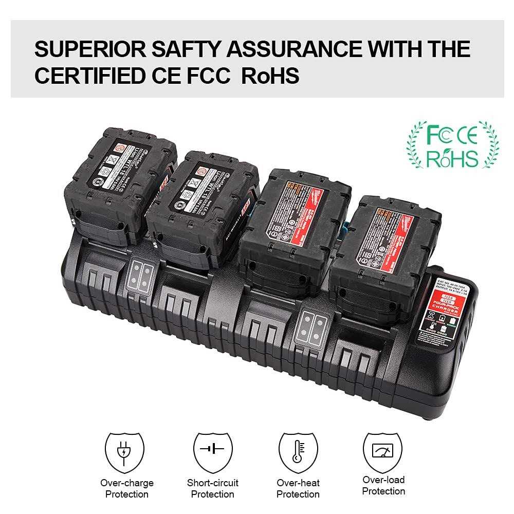 for M18 Battery Charger 4-Ports WaxPar M18 Rapid Battery Charger 48-59-1804 Compatible with Milwaukee 18V XC Lithium Ion Battery 48-11-1850 48-11