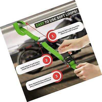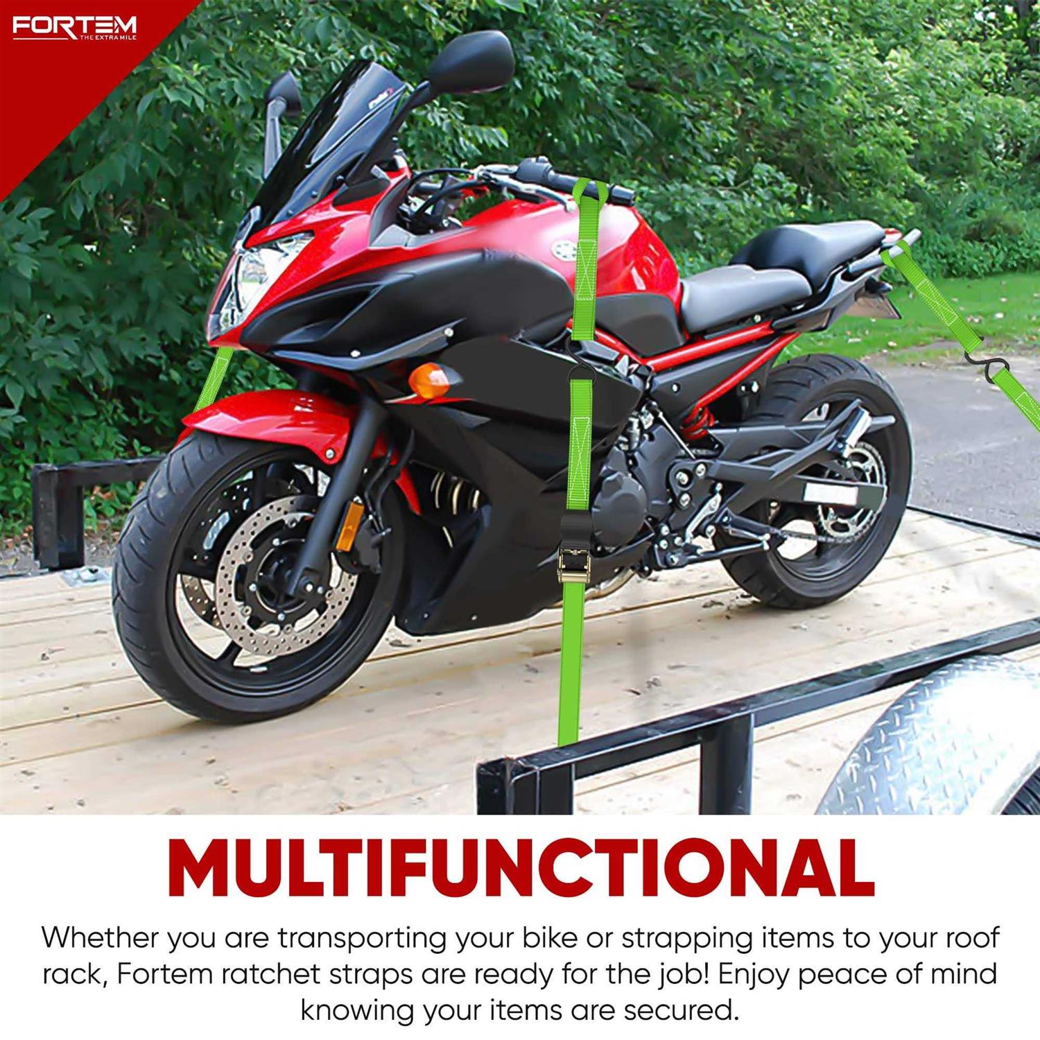 FORTEM Ratchet Straps, 4X 15ft Tie Down Strap Set, 4X Soft Loops, Motorcycle Straps Tie Downs, Cargo Straps for Trucks, 1500lb Break Strength, Rubber