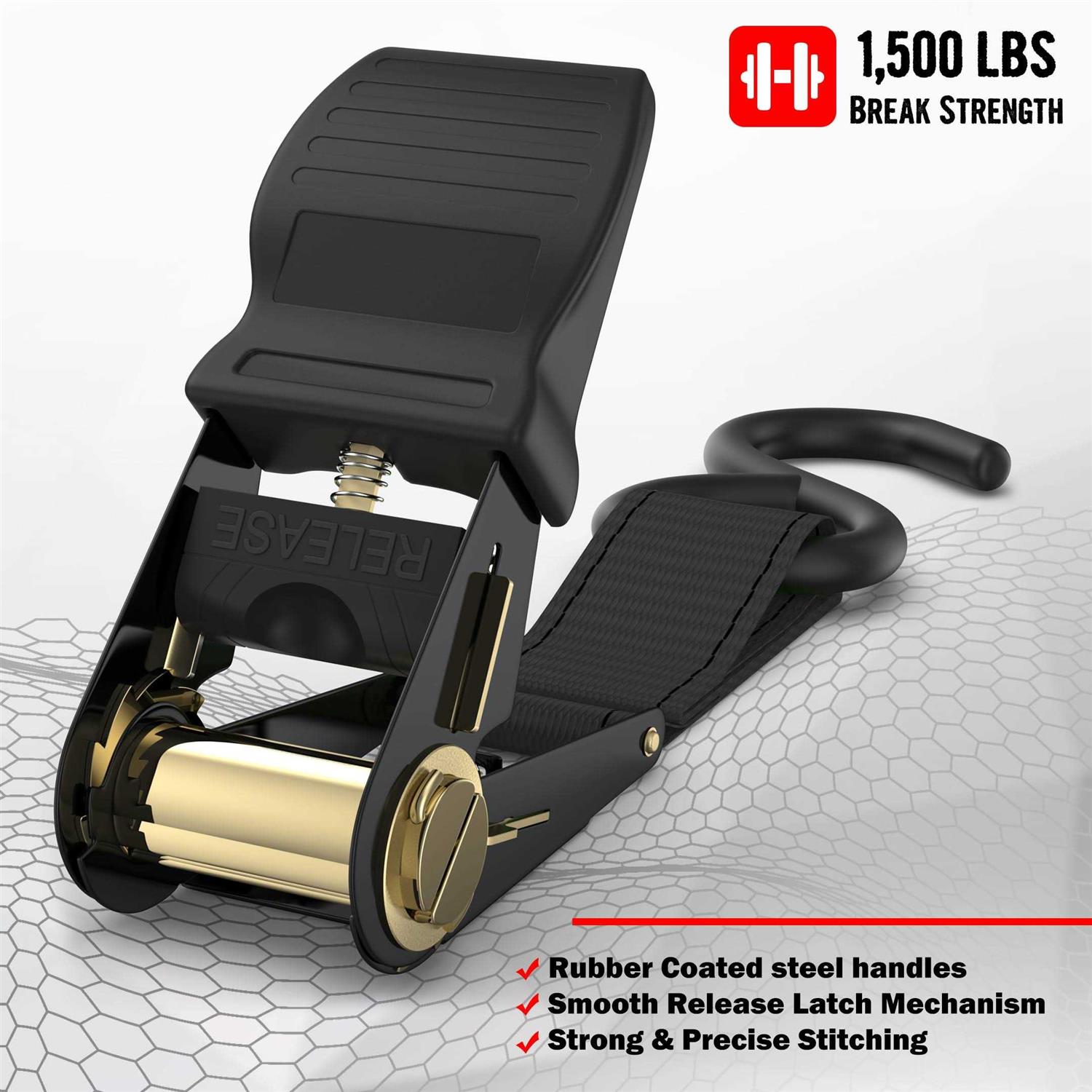 FORTEM Ratchet Straps 1650lb Break Strength 4 15ft Tie Down Strap Set 4 Soft Loops Motorcycle Straps Tie Downs Cargo Straps for Trucks Rubber Handles