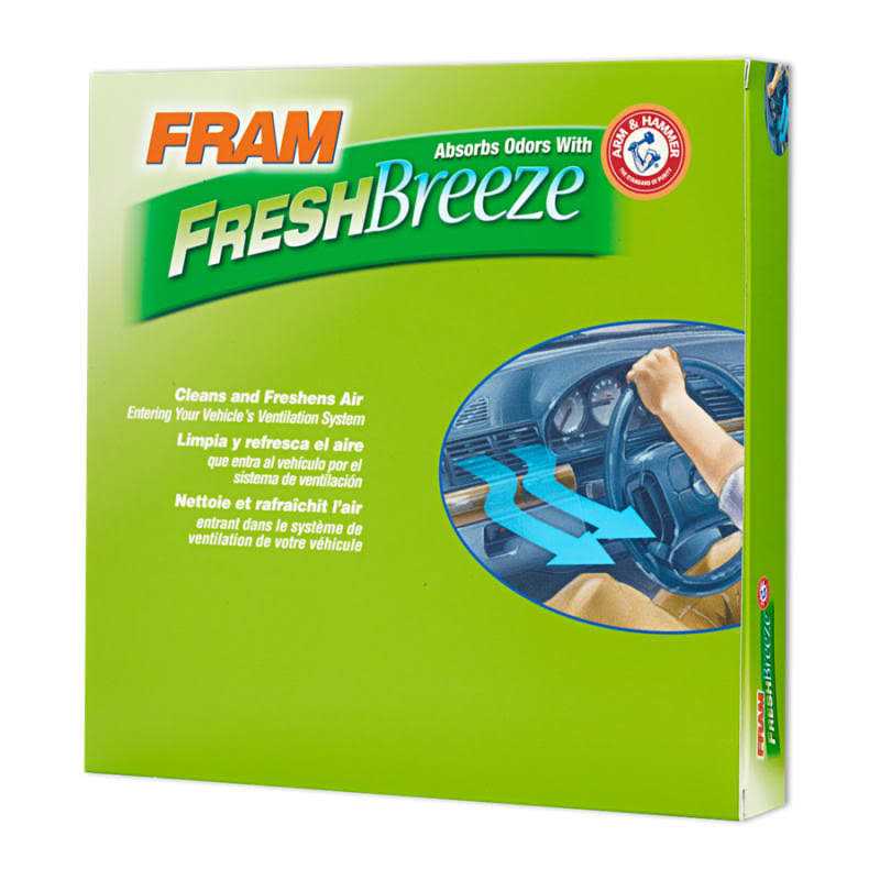 Passenger Compartment Air Filters by Fram. Details:Cabin air filters have proven to be essential to your vehicle as air quality can be severely affected by wildfire smoke, pollen and dirt. FRAM Fresh Breeze cabin air filter is the only cabin air filter that uses the natural deodorizing properties of ARM & HAMMER embedded in the filter to get rid of odor flowing through the ventilation system. FRAM cabin air filter filters 98% of these contaminants. Particles that enter the vehicle with outside air through the vehicle’s air conditioning, heating system and ventilation system can become concentrated and expose passengers to smoke, road dust, dirt and particles at higher levels than outside the car. Breathe in cleaner air with a FRAM Fresh Breeze Cabin Air Filter.