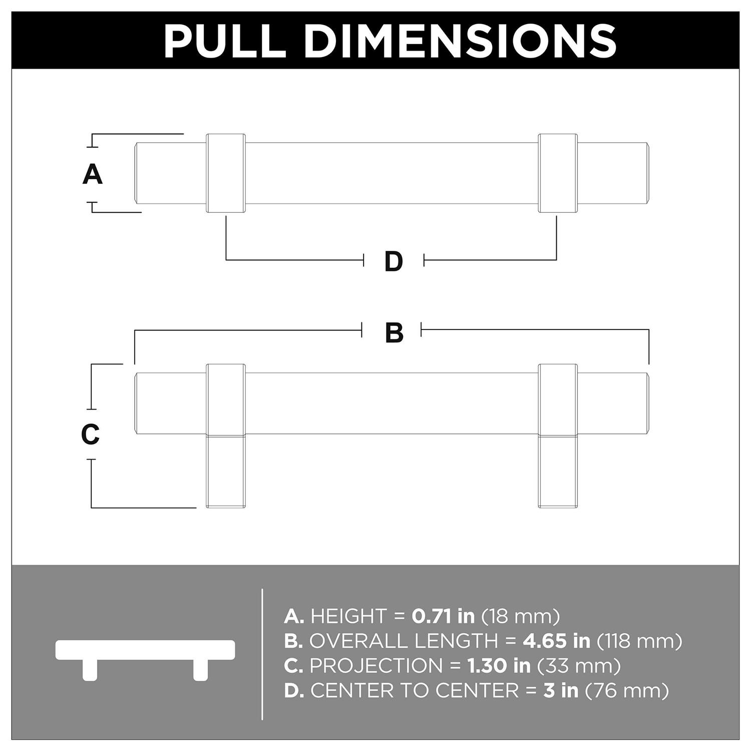 Simple is beautiful. Put the finishing touch on a room or entire home quickly with beautiful furniture handles that can go from the kitchen to the bedroom effortlessly. As a kitchen cabinet handle or a drawer pull, the Simple Wrapped Bar black cabinet pull is the sophisticated cabinet hardware to complete your decor. This black pull features sleek lines with a 3 inch center-to-center, offering a comfortable grip on your cabinets and drawers. Made by Franklin Brass with over 70 years in cabinet hardware, this line of modern pulls gives you quality at a practical price.