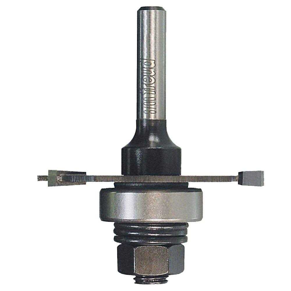 Slotting cutter set come complete with an arbor, bearing and clean-cutting three wing cutter to quickly cut 9/16 in deep slots and grooves in hardwood, softwood, plywood and composites. Ideal for T-mouldings, spline joints, tongue and groove joints and other applications. For use in hand-held and table-mounted routers.