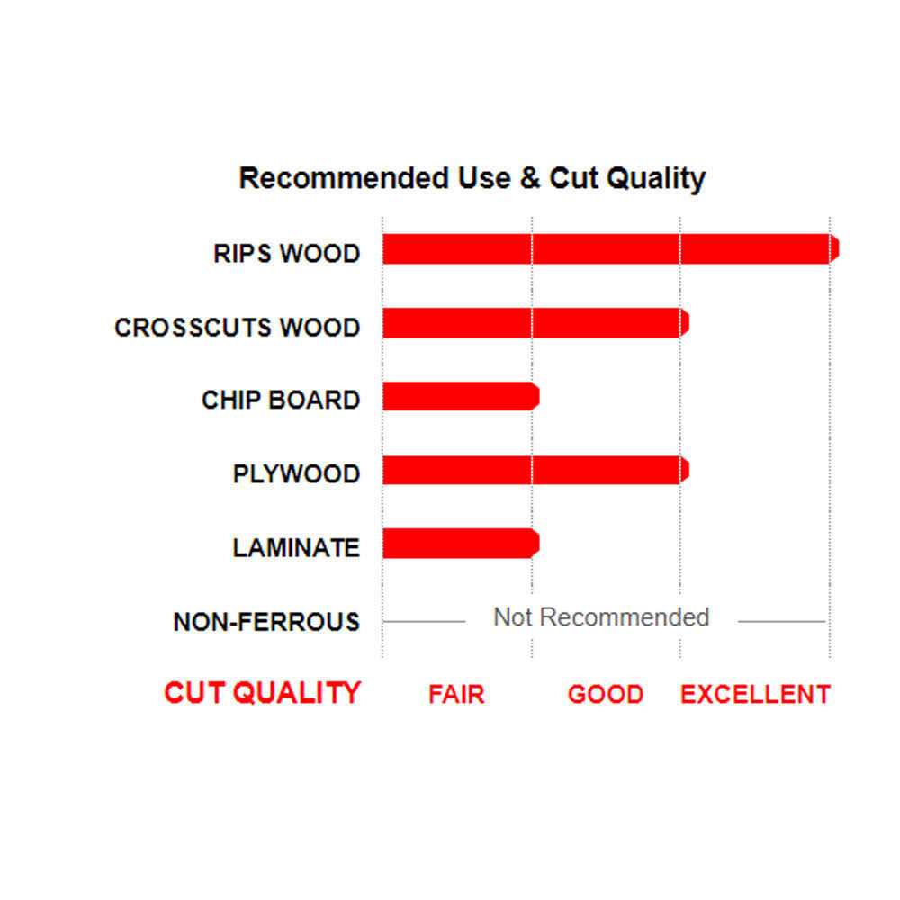 - Positive Hook Angles for fast cutting and easy feeding in ripping applications.
