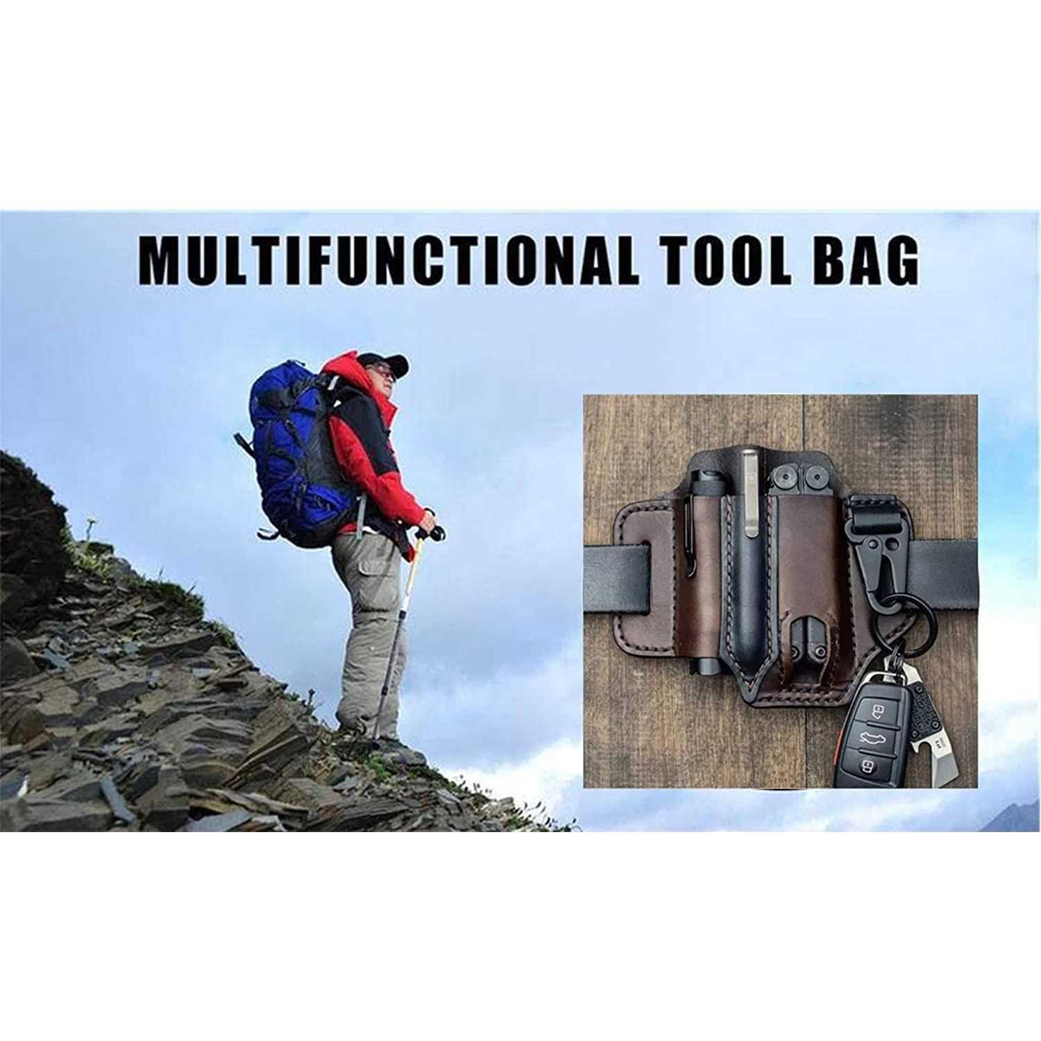 WallDecalsAndArt Multitool Sheath for Belt, Leather EDC Pocket Organizer for Men, Leatherman Sheath with Pen Holder, Key Fob, Flashlight Sheath, EDC