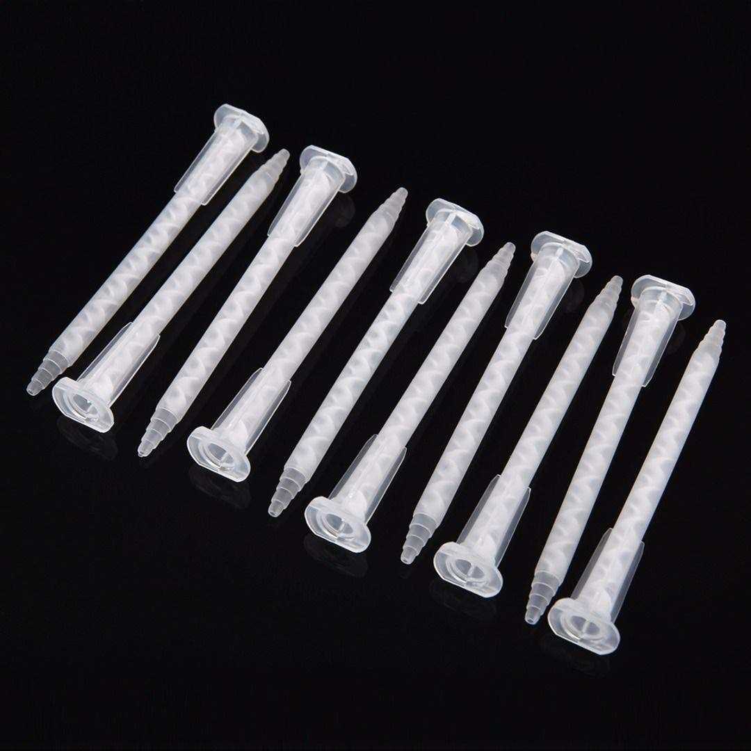 - Made of plastic material in clear white shell, spiral interior static mixing nozzle