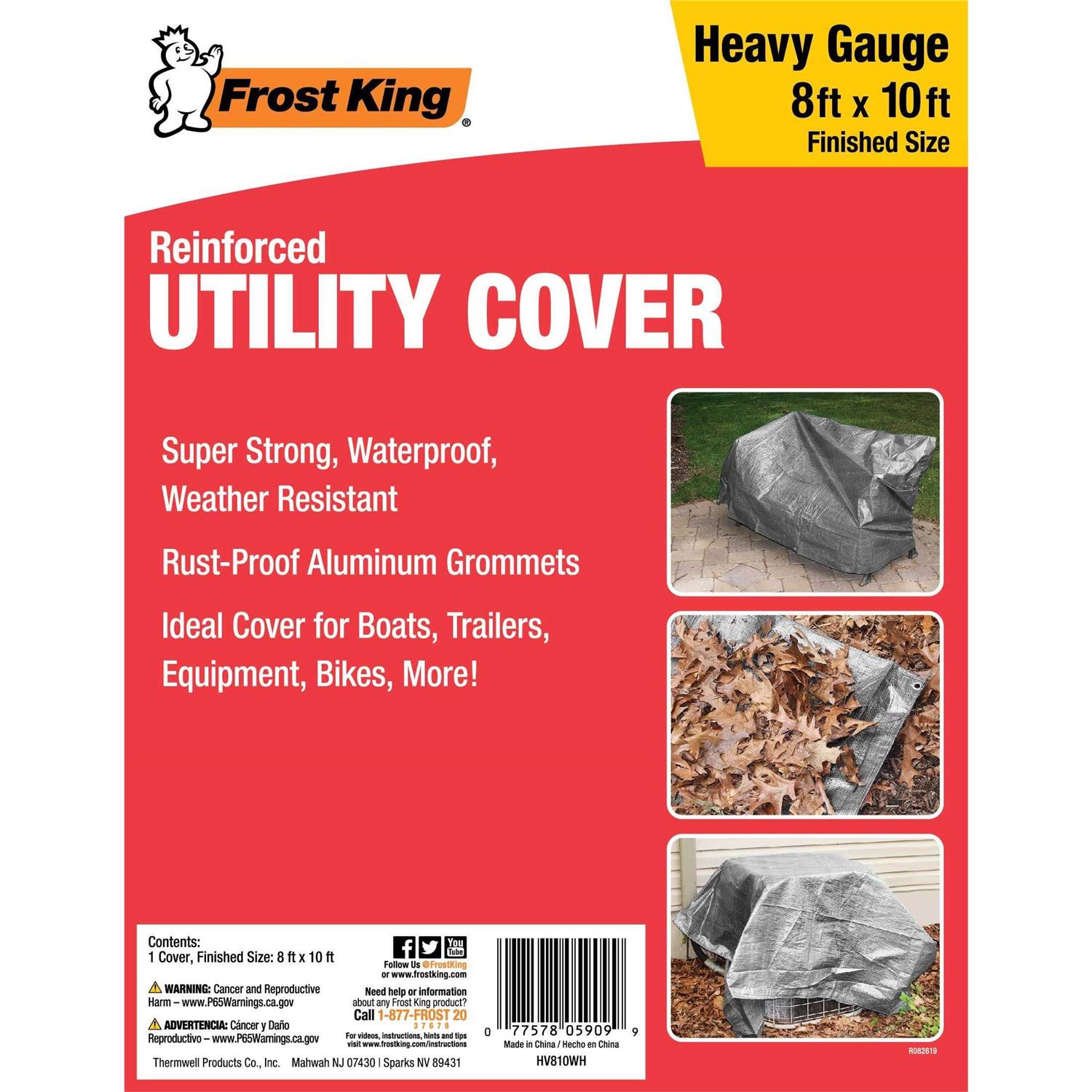 The Frost King Reinforced Utility Cover is designed for protection. It is super-strong, waterproof and weather-resistant. This item is ideal for keeping boats, trailers, equipment, bikes and more out of the elements. The polyethylene waterproof tarp also features rust-proof aluminum grommets so you can make sure it stays in place in windy conditions. This cover measures 8 ft x 10 ft, making it ideal for a range of applications around the home.