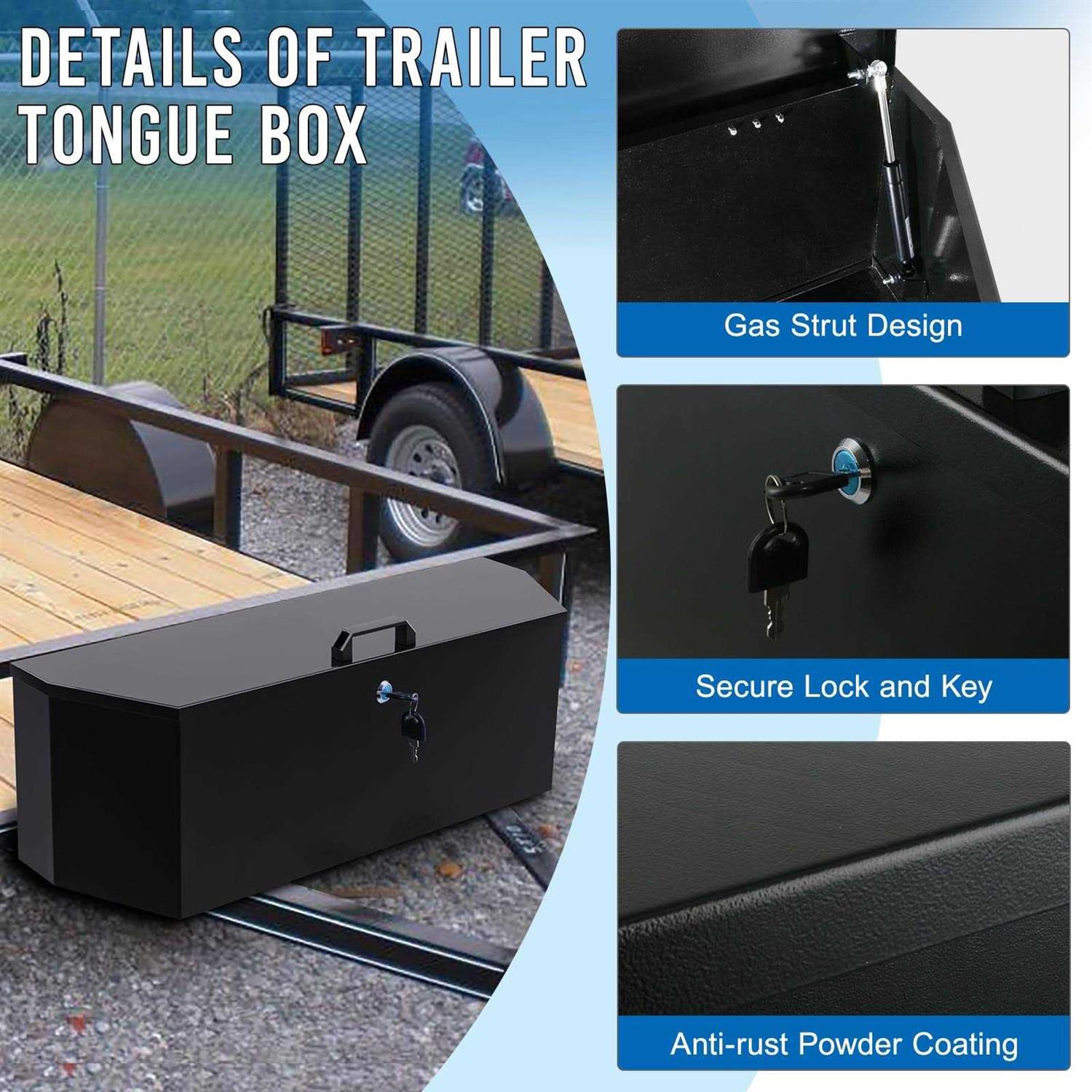 Fumingpal Trailer Tongue Box 35 inch Heavy Duty Steel Trailer Tool Box Trailer Toolbox Tongue with Lock and Hanlde