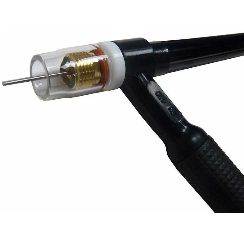 Material: Pyrex Note: This cup requires the use of a large diameter gas lens (45V44) to fit #9 & #20 torches or the Furick Torch Mount Kit to fit #17, #18 and #26 torches. The #8 pro cup is an AC/DC polarity consumable with a 200 amp rating and has an inner diameter of 0.500″ (12.5mm). It is commonly used for most mild steel and stainless steel applications where good gas coverage is wanted and arc stability is critical. The #8 size cups are a great all around size for most industrial, hot rod, and hobbyist applications. It will require 15-20 CFH of argon flow. You can run 3/32″ (2.4mm) or 1/16″ (1.6mm) tungsten with this cup. Use these accordingly and try to refrain from welding on dirty/oily applications that would spit back at glass and impede visibility.