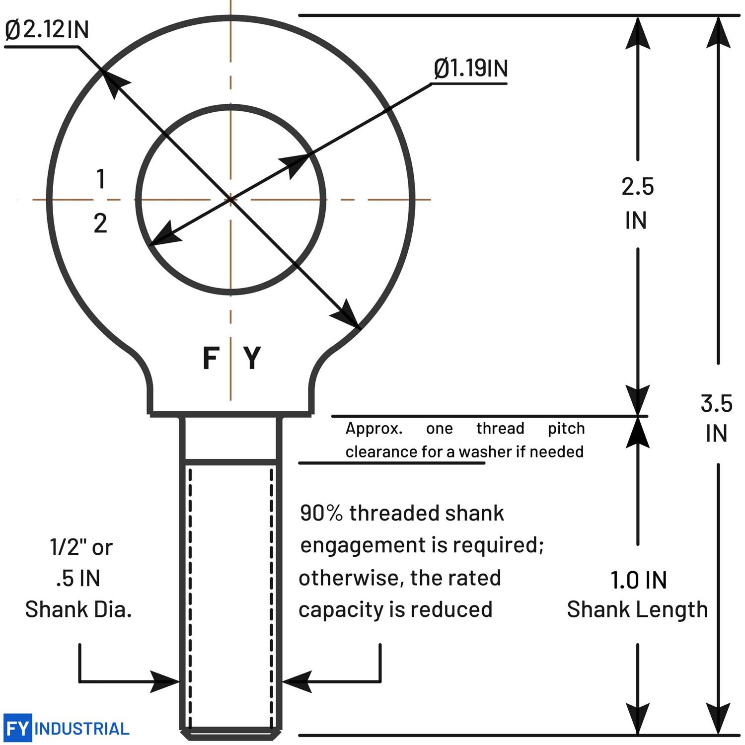 - Industrial Grade Heavy Duty Lifting Eyebolt 1/2″-13 X 1″