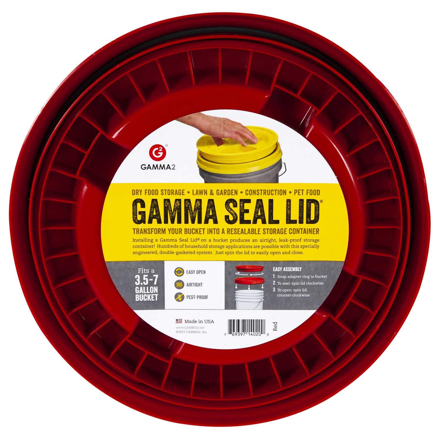 The patented Gamma2 Seal Lid uses two gaskets to assure an air-tight and leak-proof seal. Made in the USA from high-quality, durable plastic. Features Gamm2’s signature lid for easy opening and closing. Ideal for 3 – 7 gallon, 12-inch diameter pails and buckets.Like many households, you probably have a 5-gallon bucket or two hanging around just taking up space. Thanks to Gamma2 Plastics, you can now turn that useless bucket into an air-tight and leak-free storage container! The Gamma Seal Lid is a unique, high-quality item, that is made in the USA. Gamma2 has created a special seal and adapter that is first attached to the rim of the bucket. Then the signature Gamma2 spin-lock sealed lid simply screws down into the adapter and voila! You now have an excellent air-tight container that can be used to store food, pet food, paint or anything else that needs to be kept air-tight, dark, and/or moisture-free.Great for keeping insects and moisture out of containers!