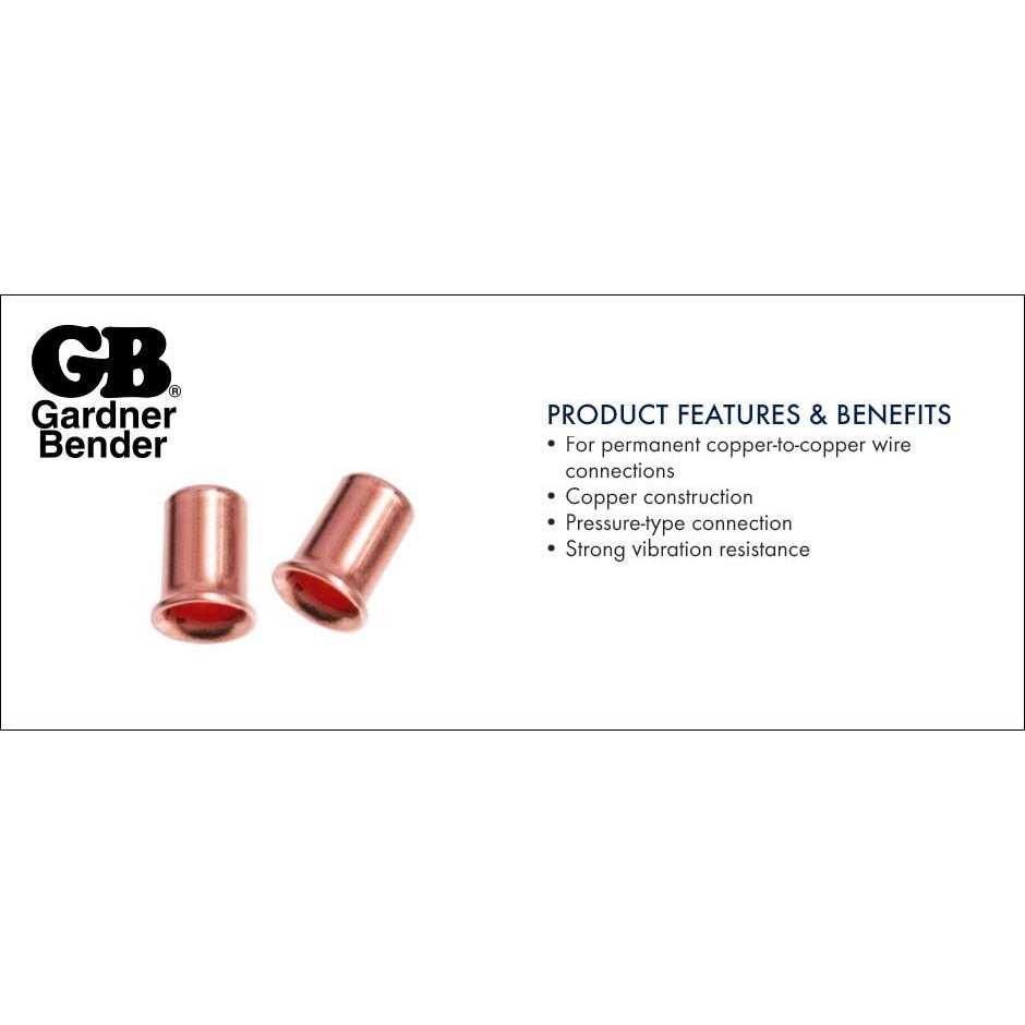 Use GB crimp connectors for strong, vibration-resistant permanent connections in branch circuit and fixture wiring. Two styles and sizes available. Copper or zinc-plated steel.