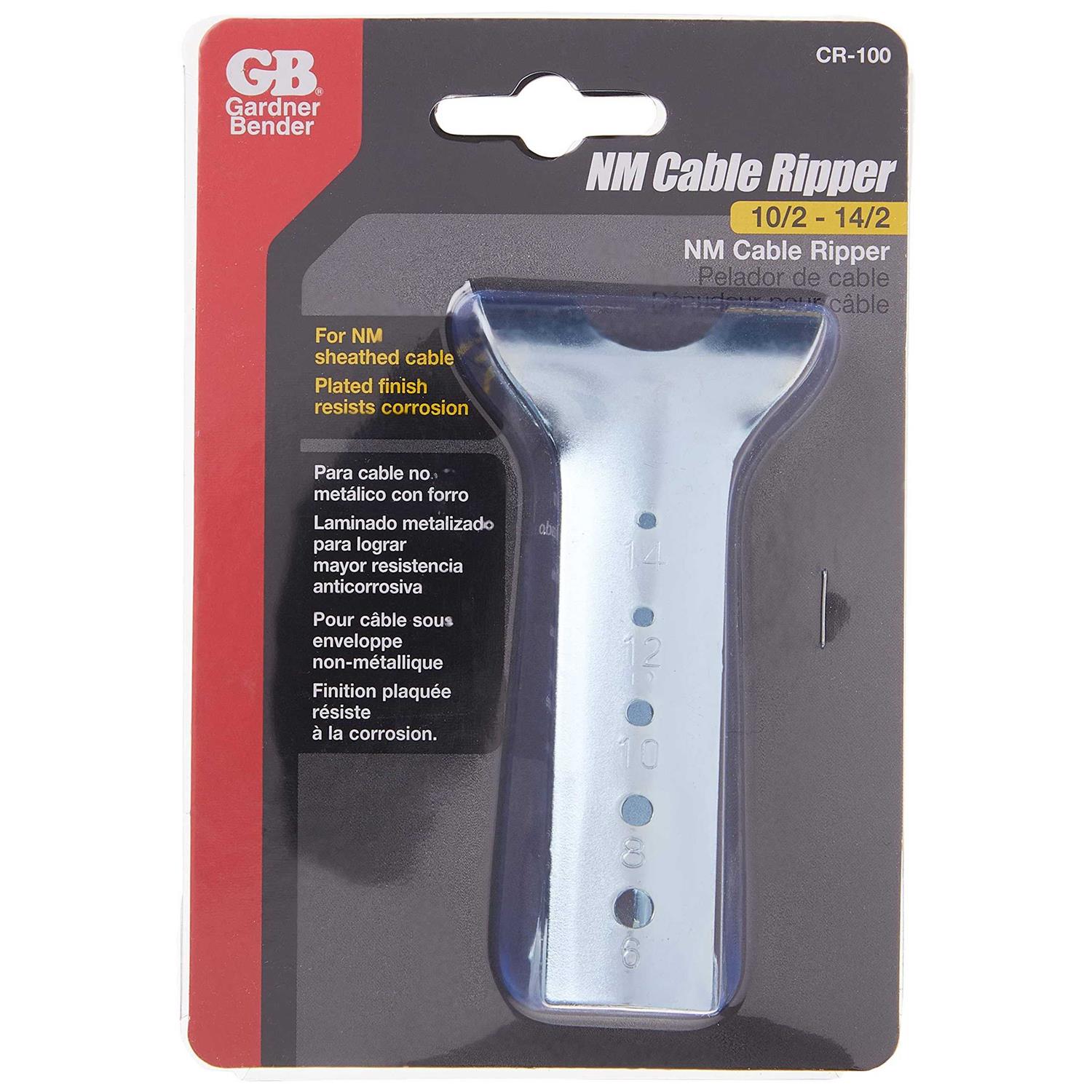 Tool slits romex and other non-metallic cable, checks wire gauge 6 to 14. Traditional squeeze handle. Adjusts to most jacketed cable.