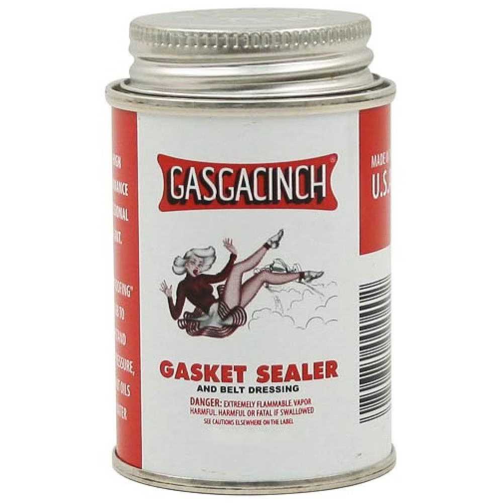 All-purpose, heat-resistant gasket sealer. Gasgacinch is very fluid, which allows it to flow into tiny fissures and cracks, sealing air pockets where other paste sealants fail. When cured, Gasgacinch is flexible, has high-peel strength, high-shear strength, fatigue resistant, vibration dampening, high heat resistant, gasoline resistant, and oil resistant. Adheres to carbon steel, alloy steel, aluminum, titanium, lead, magnesium, synthetic and natural rubber, copper and cork.
