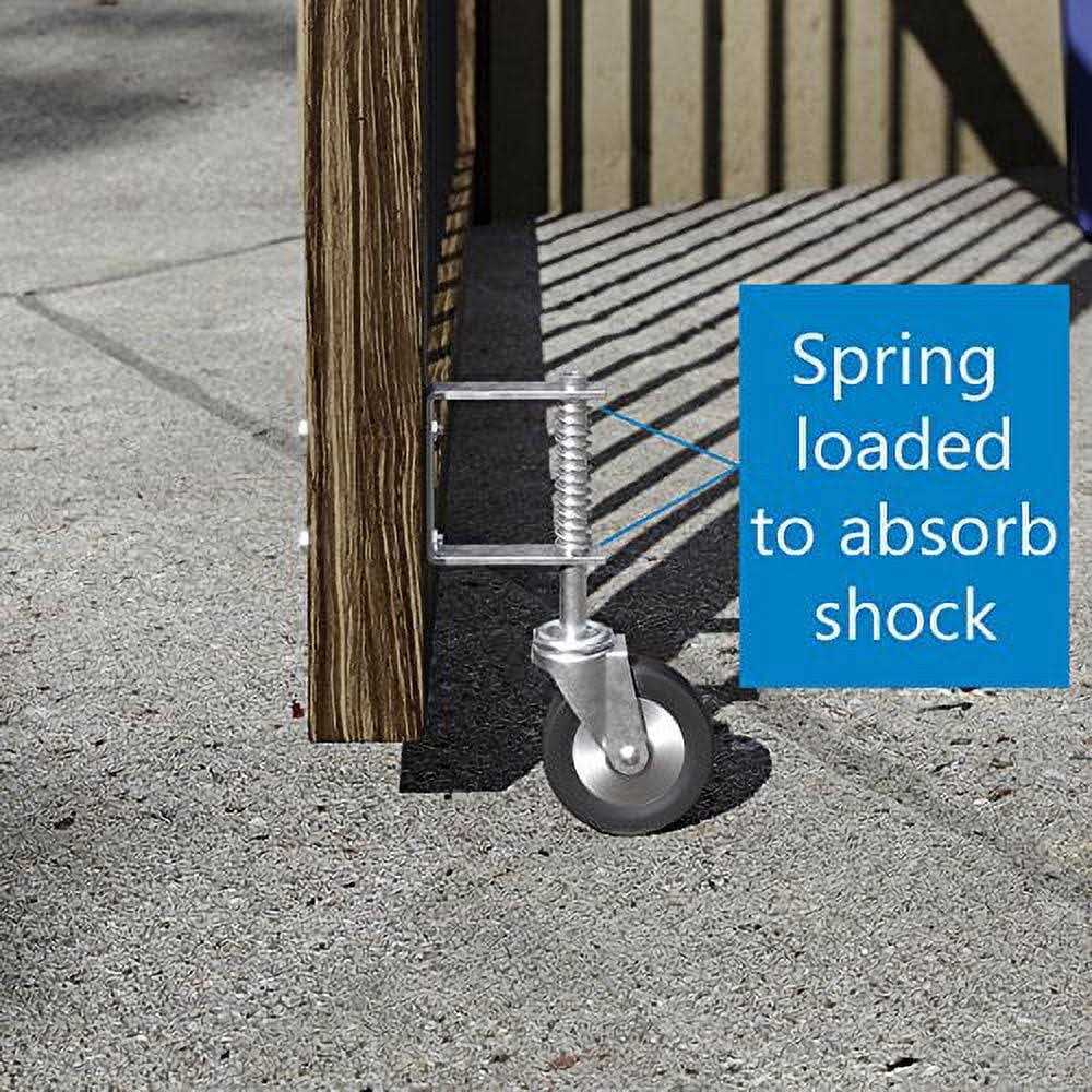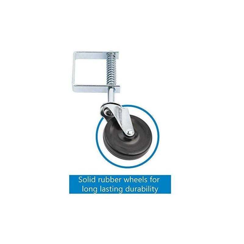 Designed to assist with the opening and closing of gates. Spring-loaded to absorb shock over uneven surfaces. Can be used on large gates, barn doors, corrals, driveway gates and more. Hard rubber wheels are durable and can be used on dirt, gravel, pavement, or asphalt surfaces.