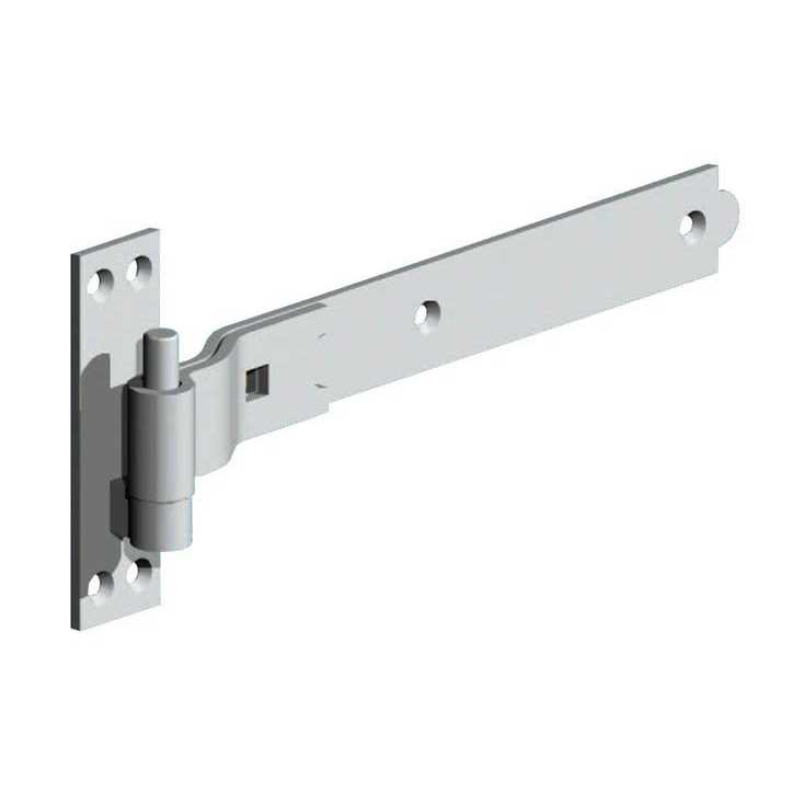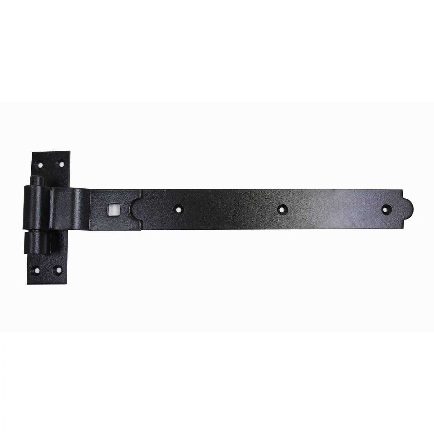 Classic heavy duty lift off hinge. For wood gates or doors. Fasteners included. Hot dipped galvanized plus black polyester powder coating for rust resistance. 18. 50-in strap. 2-in mounting bracket.
