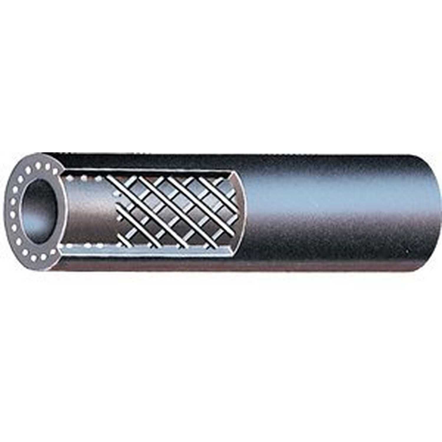 Multi-purpose hose for use on return fuel lines PCV and EEC systems and for fuel return hose connections on diesel fuel injection systems. Approved for use with leaded and unleaded gasoline diesel and gasoline blends of ethanol E85 methanol and ethers up to the legal limits allowed by the EPA. Spiral reinforced construction. Nitrile tube. NBR-PVC cover. Oil resistant cover resists the effects of high heat and ozone found in engine compartments. Meets SAE 30R6 and 30R7. Vacuum rating of 24 In. /Hg for sizes less than 1D 2″I.D. and 10 In. /Hg for sizes 1D 2″to 3D 4″I.D. at ambient temperatures. Temperature Rating: -40 Deg. F to 257 Deg. F -40 Deg. C to 125 Deg. C with gasoline blends. Caution: Do not use for pressure lines on fuel injected engines or for cooling system applications. Use Barricade Fuel Injection hose for fuel injection applications. Intended for use with fuels where MTBE concentrations are no greater than 15% by volume.