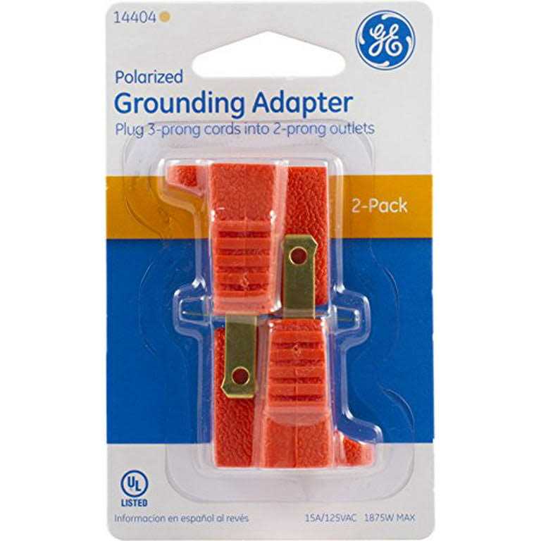 GE 14404 Polarized Grounding Adapter, Orange, 2-PackFeature Allows A 2-prong Outlet To Accept 3-prong Plugs Adds versatility to any receptacle Polarized for extra protection 125-Volt AC Before using, determine if the wall plate screw is grounded by consulting your electrician. DescriptionAdd versatility to any receptacle. The GE Polarized Grounding Adapter allows grounded two-slot outlets to accept three-prong plugs. Use the included mounting plate to attach to the wall plate. The polarized adapter adds extra protection.