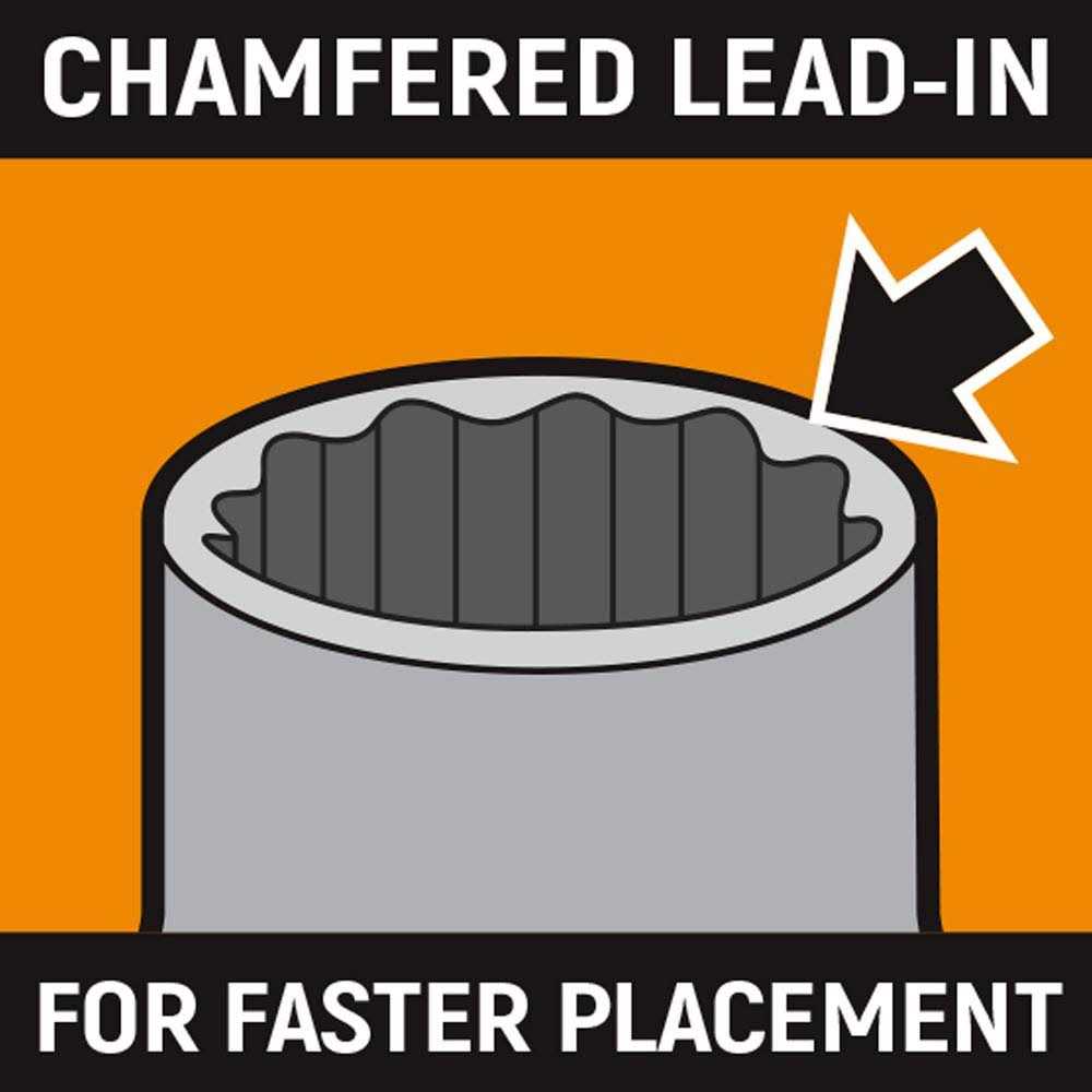 Features and Benefits Shallow broach to standard nut depth Rings at base provide quick SAE identification Turn down at base of socket provides grip surface to pull sockets off ratchets Large hard stamped part number and size on both sides of socket for easier visibility to socket size Packaged in patented slide rail for easier positioning of sockets – internal slide rail eliminates interference / ball bearing retention Set includes 3/16″ – 9/16″ Standard Sockets on a clip rail. Entry angle guides fastener. Serrated depth as deep as the fastener. Large hard stamped identification. Double line to easily identify SAE vs. metric sockets. Made of 6130 Alloy steel and full polish nickel chrome plated.
