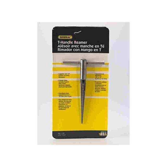 For removing burrs from cut pipe, tubing and conduit. Used for enlarging and countersinking holes in sheet metal, plastic and other materials. Made of hardened and tempered tool steel with precision ground cutting edges. T-handle provides extra leverage.