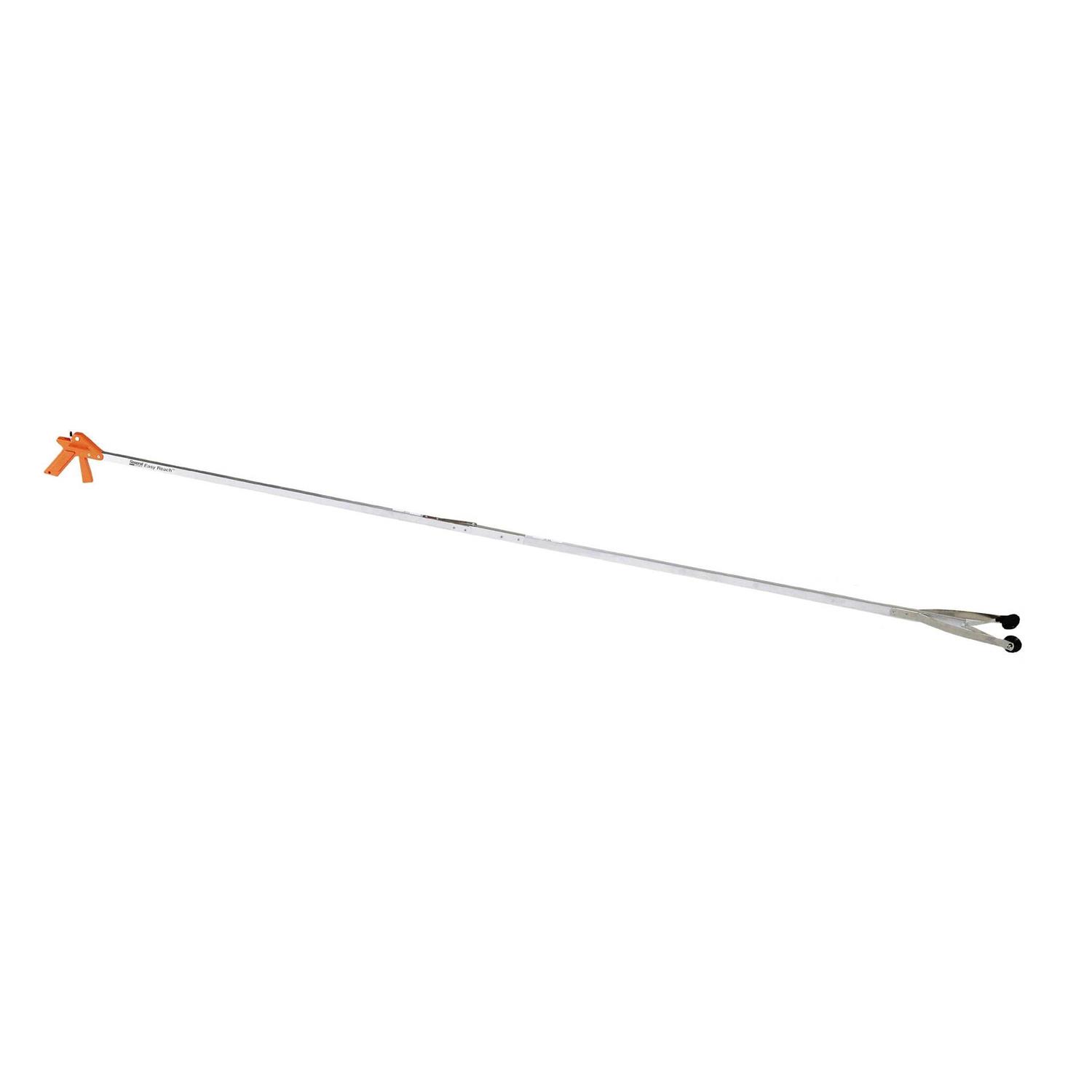 General Pipe Cleaners 60″ Easy Reach Pick Up Tool You’ll find dozens of uses for this labor-saver, like cleaning traps and manholes of rocks and debris, grabbing objects from hard to get at places, and changing light bulbs. You can even retrieve golf balls from ponds and pick fruit from trees. It’s sensitive enough to pick up small screws and washers, yet strong enough to pick up a five pound rock. The locking trigger feature lets you grab and lock on to objects without further trigger pressure. The EasyReach is made of extruded aluminum and stainless steel to be durable and corrosion resistant. Two thermal plastic rubber caps open 4-1/2″ to grip nearly anything. This tool folds for more convenient storage.