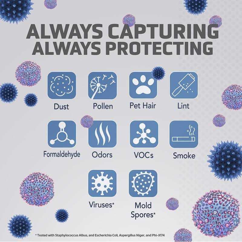 - Reduces up to 99.97 of dust, pollen, pet dander, mold spores, and allergens as small as .3 microns from the air REDUCES ODORS