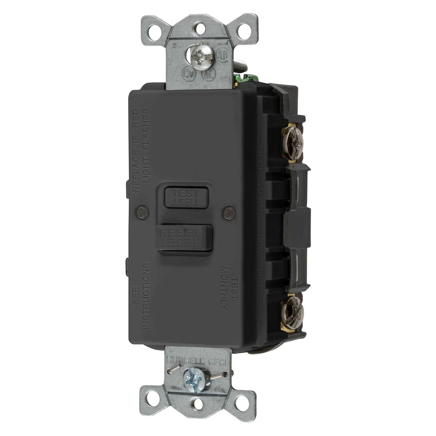 Hubbell GFCI Receptacle,20A,125VAC,5-20R,Black GFBFST20BK