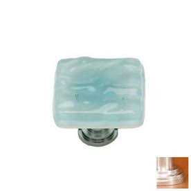 Solid brass base construction. These stunning glass pieces are truly unique in that they are individually hand made. Use them on drawers cabinets vanities ornamental chests and all types of furniture. There may occasionally be slight variations in the color and size due to the handmade nature of this product. The base on our decorative hardware utilizes an 8-32 screw. Light aqua top finish. Projection 1.