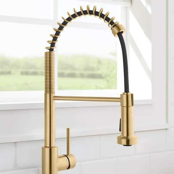 Glacier Bay 1007 907 585 Paulina Single-Handle Spring Neck Pull Down Sprayer Kitchen Faucet in Matte Gold