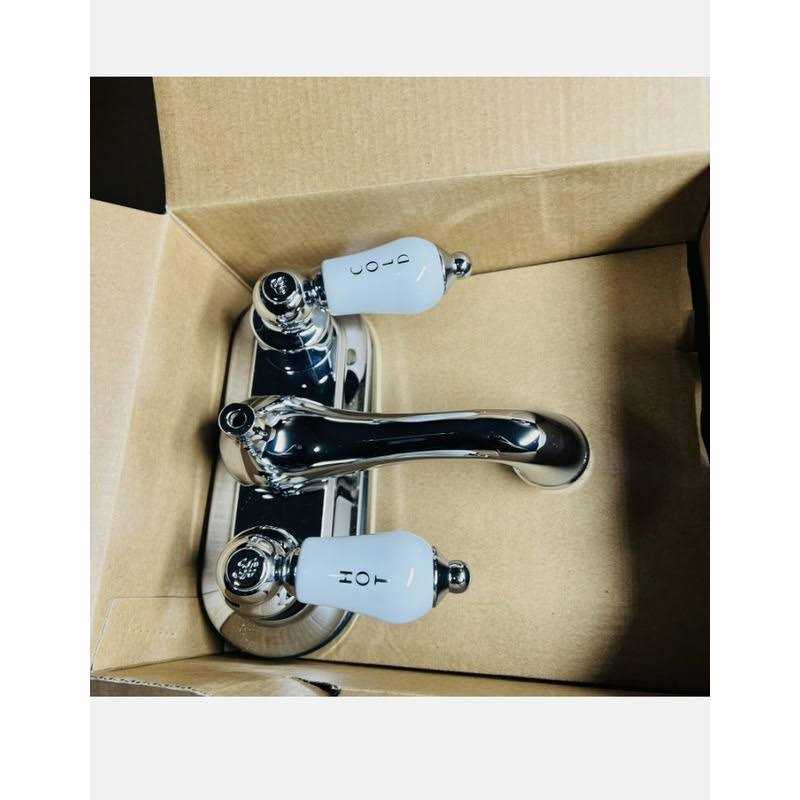 Centerset 2-Handle Low-Arc Bathroom Faucet in Chrome has an easy to clean chrome finish and porcelain handles for a traditional look that will complement a variety of bathroom decor. WaterSense certified with a 1.2 GPM water flow to help reduce water use, this faucet also has ceramic disc cartridges to help prevent dripping. Easy to use with a 2-handle design and low-arc spout, installation is a breeze with the deck plate mount. Featuring the exclusive Click Install drain assembly for quick and simple installation. Pair with other pieces from the Teapot Collection for a complete and polished look.
