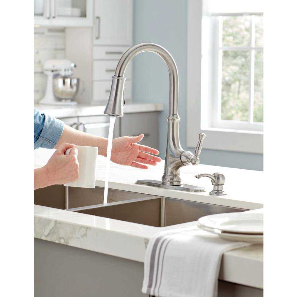 Glacier Bay Touchless LED Single-Handle Pull-Down Sprayer Kitchen Faucet with Soap Dispenser