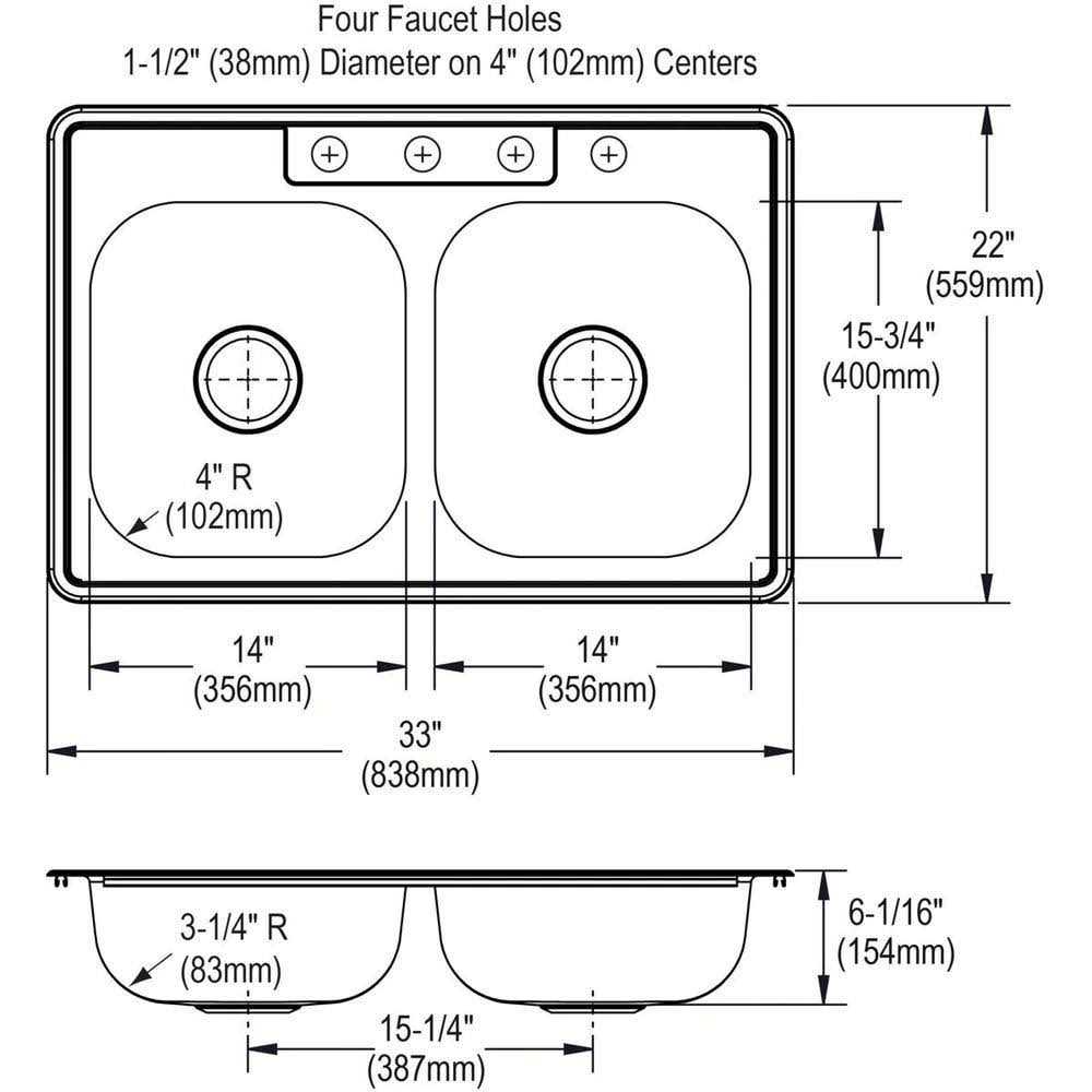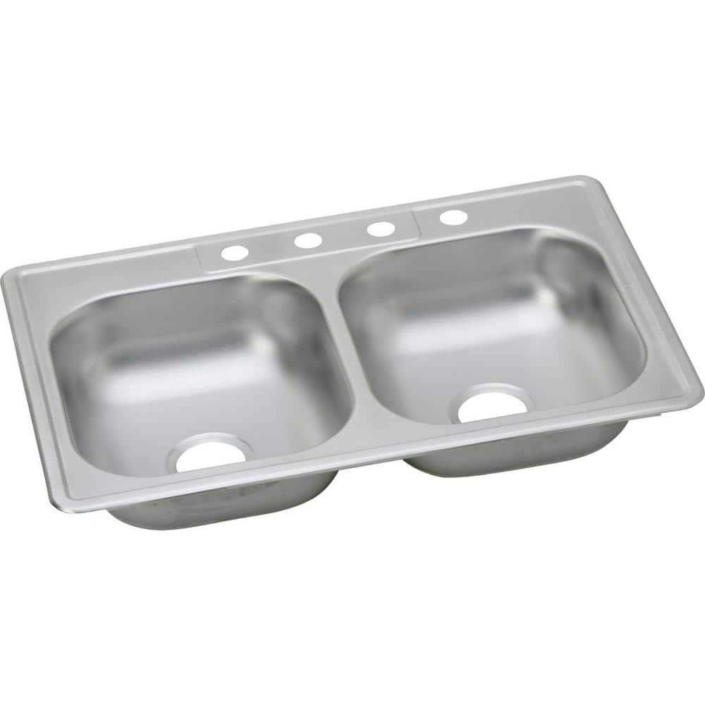 Glacier Bay Drop-In Kitchen Sink 33 in. 4-Hole Double Bowl Stainless Steel