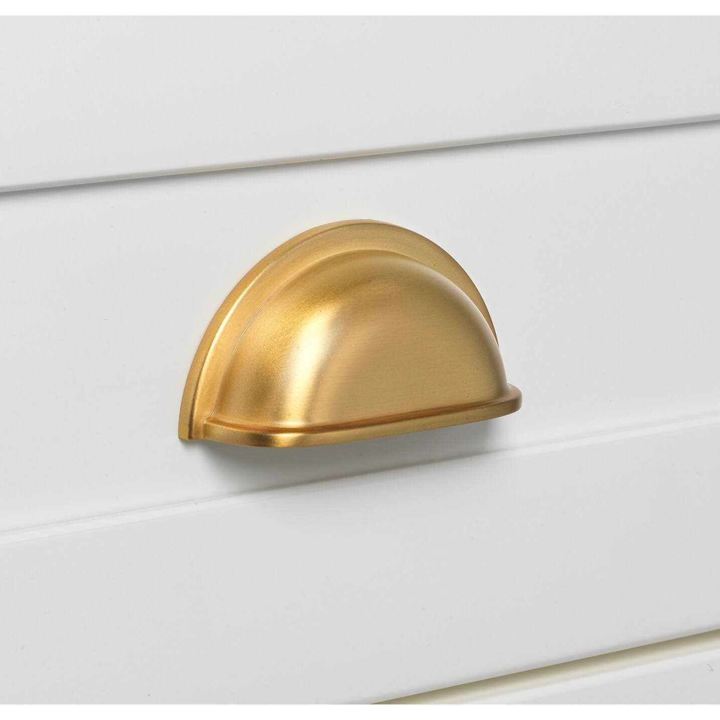 These cabinet bin pulls add a classic look to your cabinets while providing a high-quality product. Each pull is individually bagged to prevent damage to the finish and include standard #8-32 x 1 in. screws for quick and easy installation. 3-3/8 in. L x 1-7/8 in. W x 1 in. projection 3 in. screw spacing Satin gold finish Made of die-cast zinc alloy Includes standard #8-32 x 1 in. installation screwsShelf K37 (3 in. Make sure to put us on your favorites to see what’s new each day!