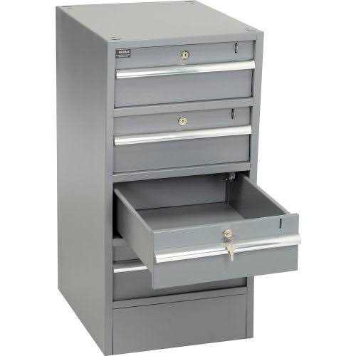 PREMIUM WORKBENCH PEDESTALS Includes built-in base. Combine any of our strong, all welded steel workbench pedestals and stacking drawers to create the ideal workstation for your application. All drawers feature full-length aluminum extrusion handle. Drawer glides smoothly on nylon rollers and includes an individual cylinder lock. All locks are keyed-alike. FeaturesPremium 4 Drawer Workbench Pedestal with Built-In Base – GrayWe provide high-quality modern products to be enjoyed by many clientsSpecifications