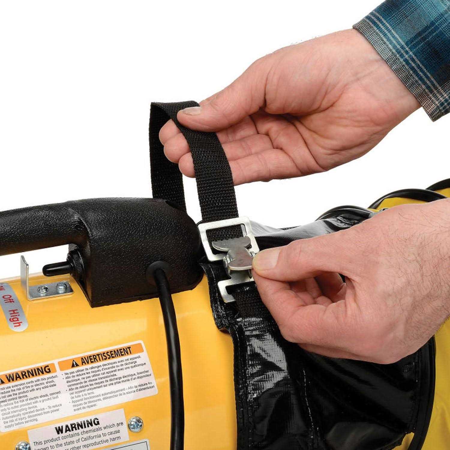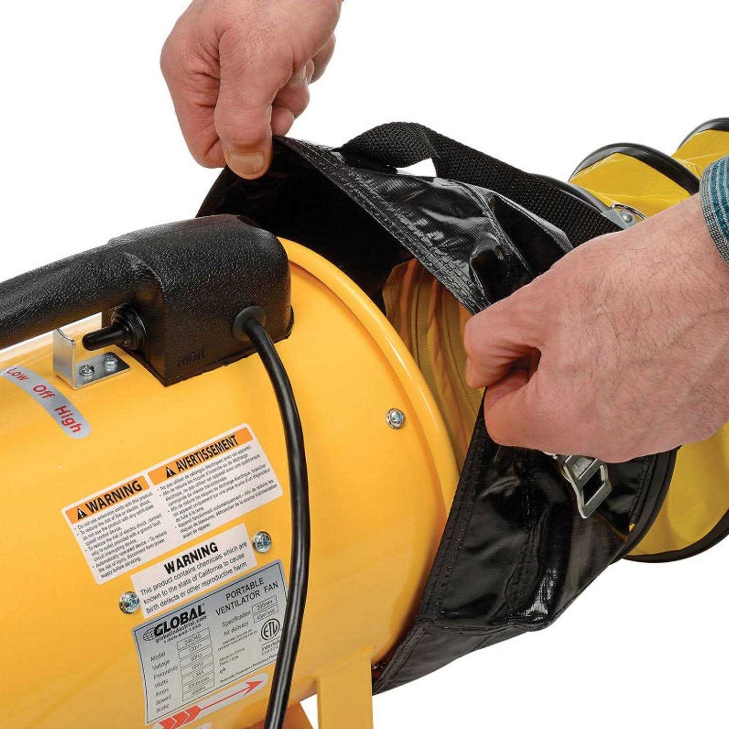 Keep your workspace well-ventilated with this 16-Foot Flexible Duct by Global Industrial. With this ducting, you can easily convert your blower fan to an exhaust fan, creating a safe environment while you work. Designed for 8-inch diameter fans, this portable ventilator duct helps ventilate, exhaust, or cool manholes and other confined spaces. Convert your blower fan (not included) into an exhaust fan easily with the quick-connect coupling and adjustable strap. Simply maneuver the 16-foot flexible utility fan duct for perfect positioning with your set-up. The poly tubing duct is constructed of 2-ply, reinforced poly-vinyl, boasting ultimate durability, while the flame-retardant design ensures optimal safety and withstands temperatures up to 180 degrees Fahrenheit. Use the convenient tie-down straps when you need to keep the duct retracted and compact while in use or for simple storage. You’ll always have a safe place to work with the Global Industrial 16-Foot Flame Retardant Flexible Duct.