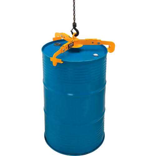 Features limited rotation 3-point contact lifting arms that minimize drum chime deflection when a loaded drum is lifted without a lid, reducing deformation of the drum. Simply raise the lifter to automatically engage the arms to the rim of the drum to lift a drum; lower the drum to the floor and unfasten the arms to remove. Lifting arms are adjustable to work with most 30 and 55 gallon Open or Closed Head Steel or Plastic Poly Drums with at least a 3/16 chime.
